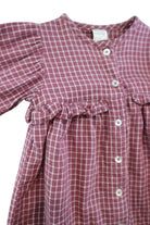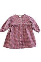 Nature Baby purple with check print long-sleeved button-down dress in size 0. 100% organic cotton.