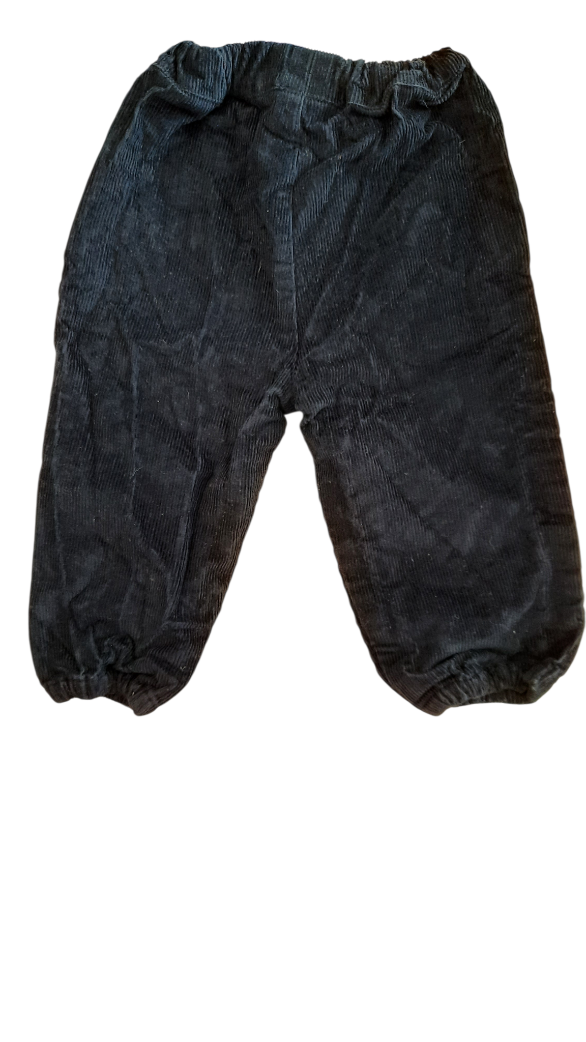 Organic cotton/elastane toddler pants. Navy blue corduroy. Good condition, slightly on the small side for a size 1.
