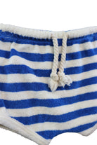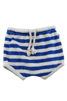 Nature Baby cream and blue stripe terry shorts in size 000. 100% organic cotton.