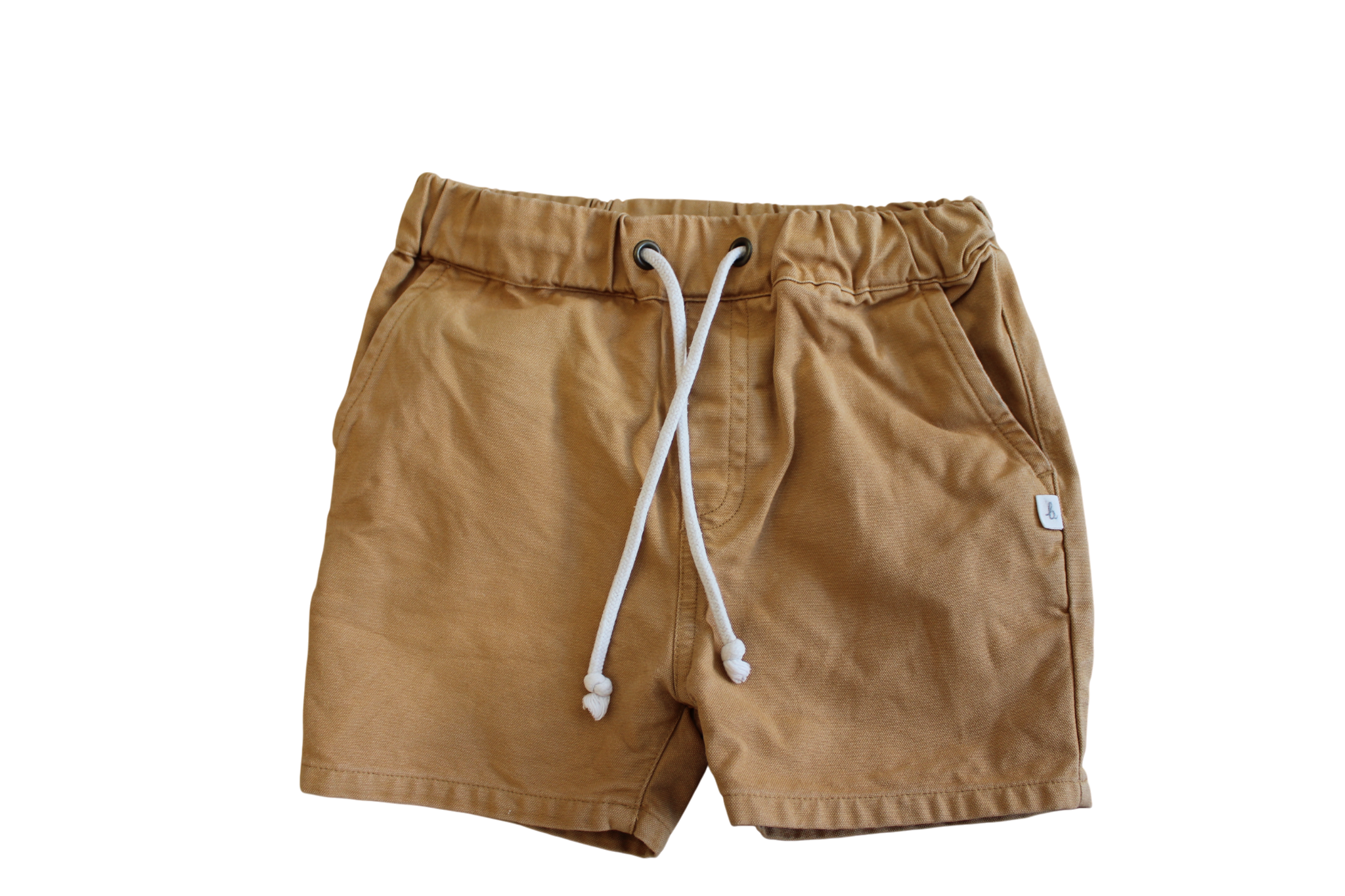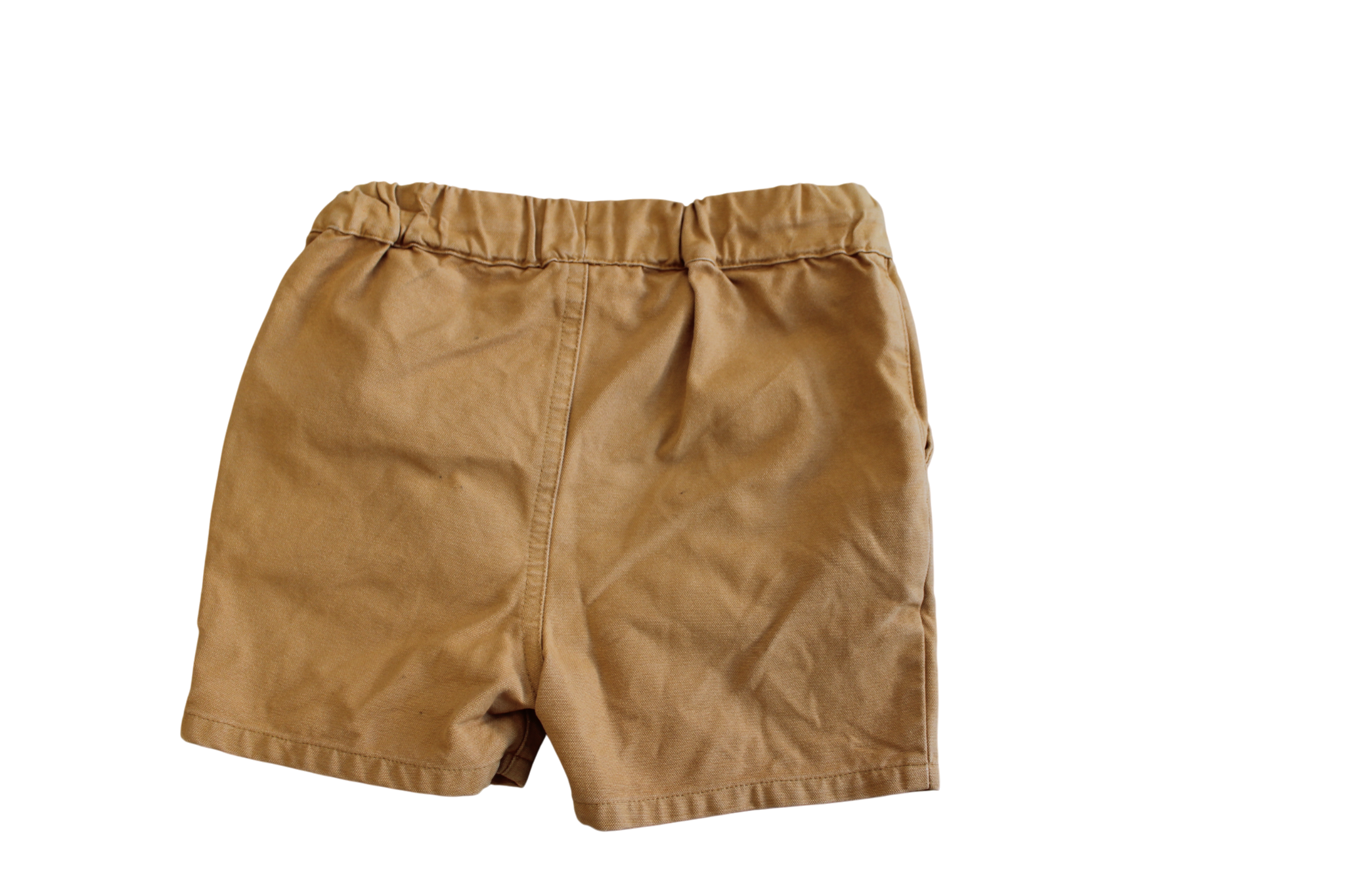 Tan Nature Baby shorts in size 2. Encased cotton drawsting tie and pockets. 100% cotton.