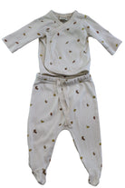 Nature Baby newborn wrap top and footed legging set in cream with leaf print, size 0000. 100% organic cotton.