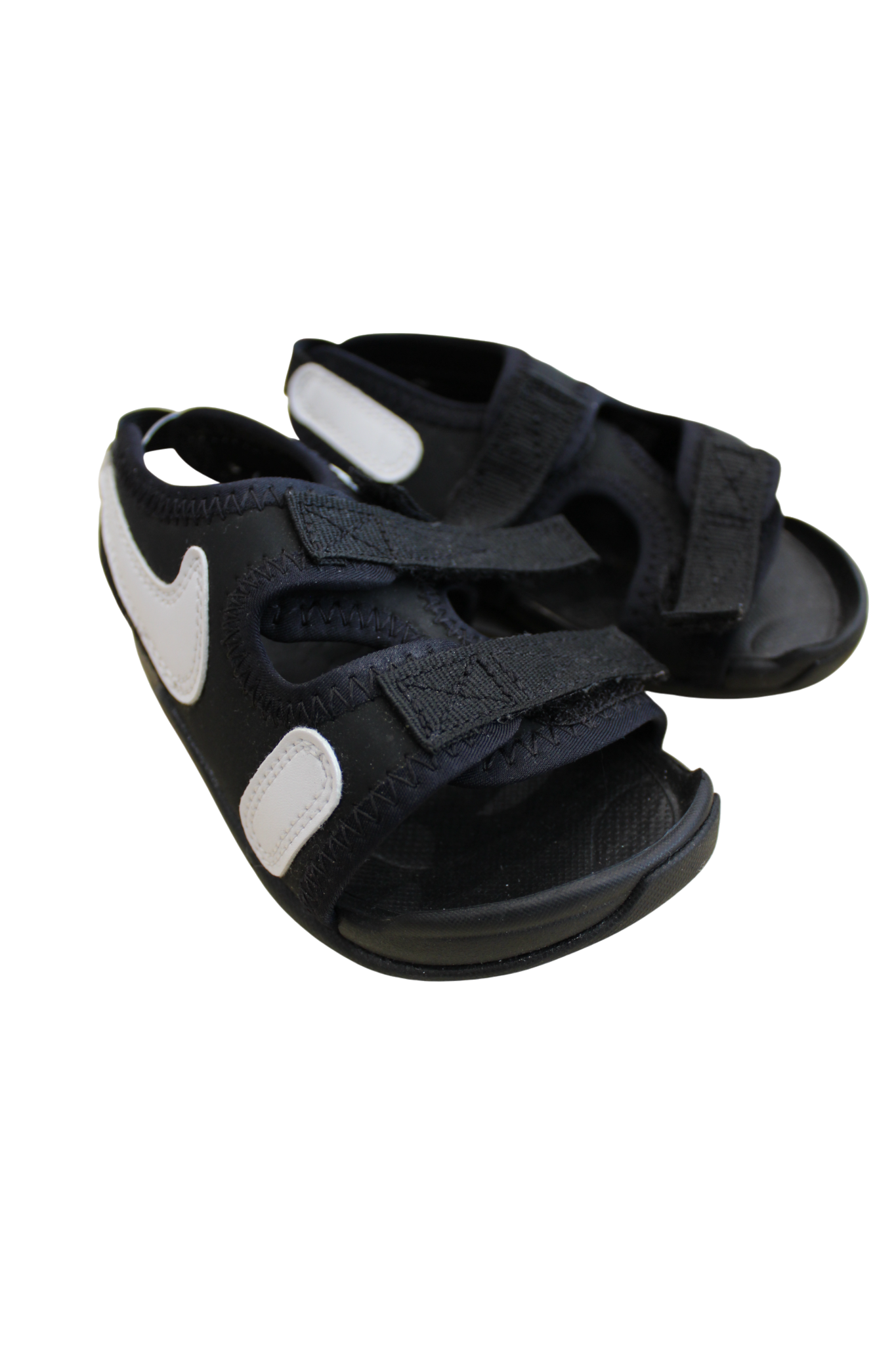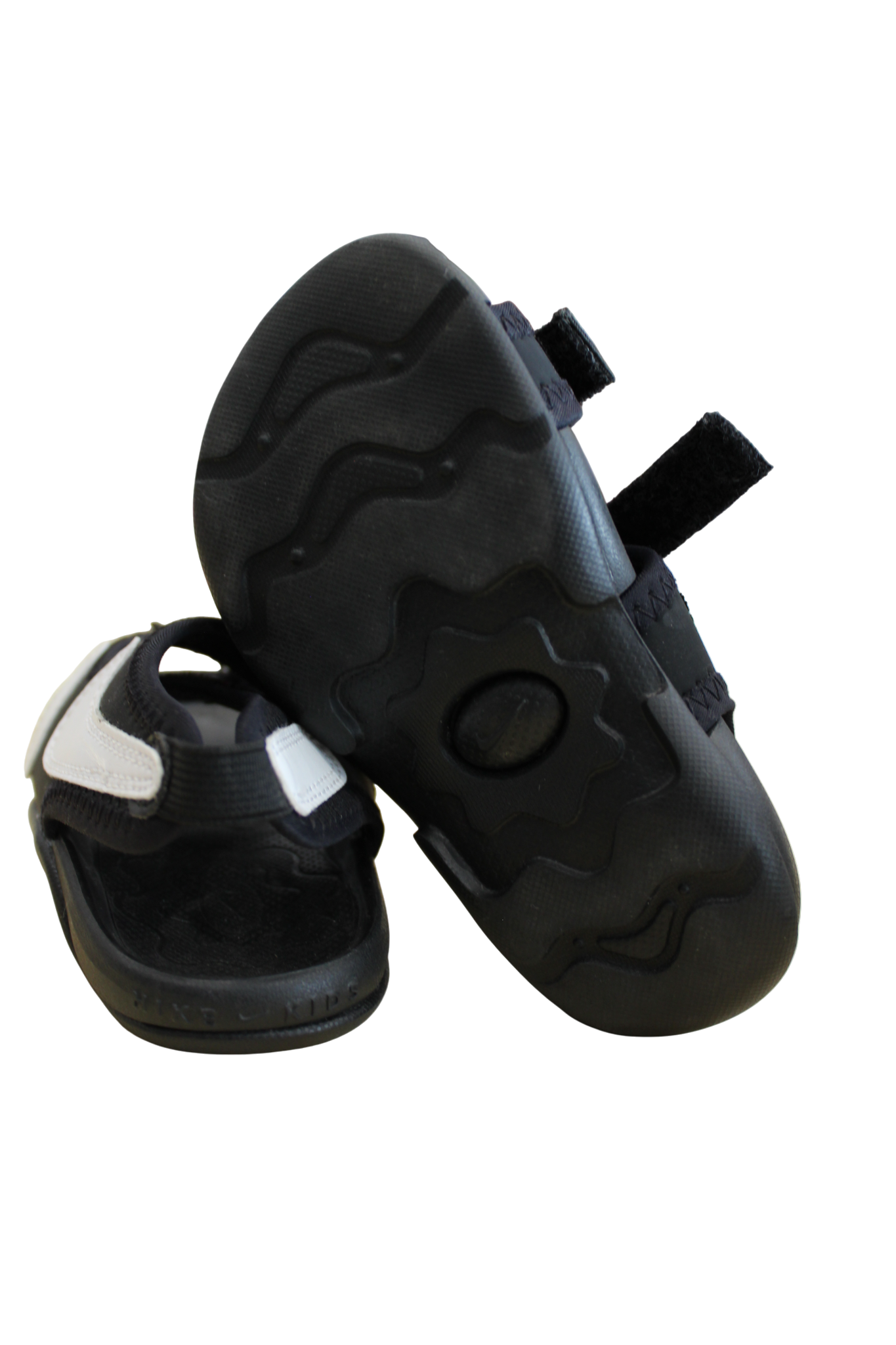 Nike toddler sandals crafted from neoprene with convenient velcro straps for quick on-and-off action. Sized US 6/EUR 22, these lightweight sandals are built to handle splashes, puddles, and playground fun. The cushioned neoprene material provides comfort and flexibility for developing feet, while the secure velcro closure keeps them firmly in place during active play. Perfect for summer adventures and water-loving toddlers who need reliable footwear that matches their energy.