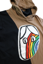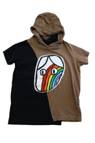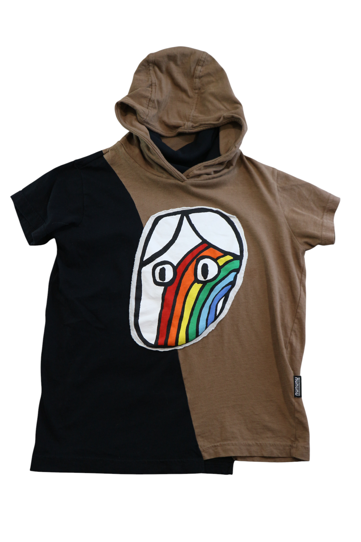 Nununu hooded t-shirt in brown and black with print, size 8-9yrs. 100% cotton.