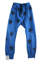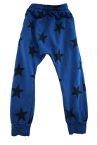 These blue kids' tracksuit pants feature a fun black star print that adds a playful touch to any outfit. Perfect for active days, they offer comfort and style for kids aged 8 to 9. Durable and easy to wear, they're ideal for playtime or casual outings. Good-fair condition, some wash fade and wear.