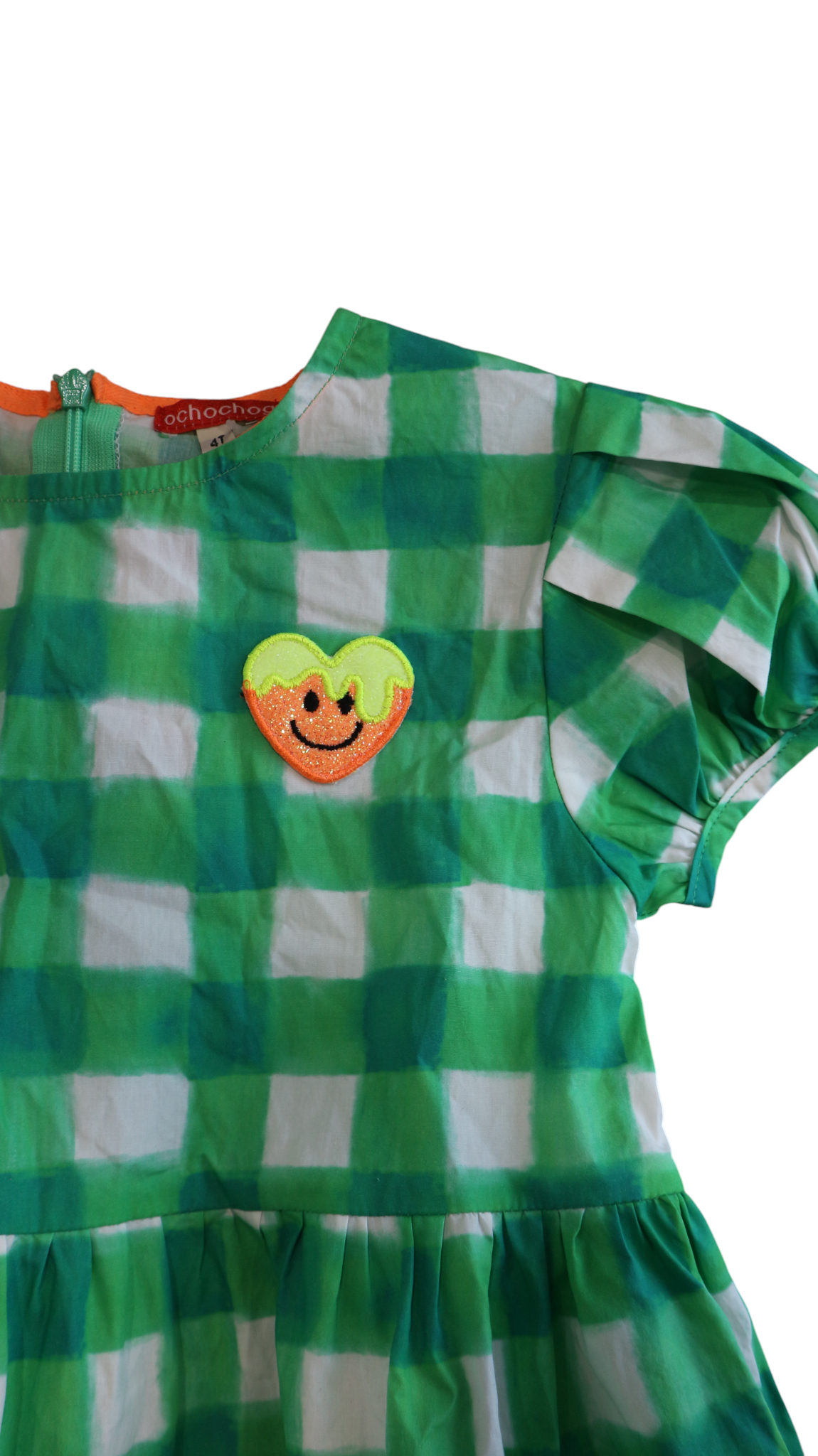 Ochochog Dress in size 4 brings vintage-inspired fun to modern playtime. This charming green gingham dress works beautifully for both everyday adventures and special moments. The relaxed silhouette gives kids plenty of room to move, climb, and explore without any fussing.