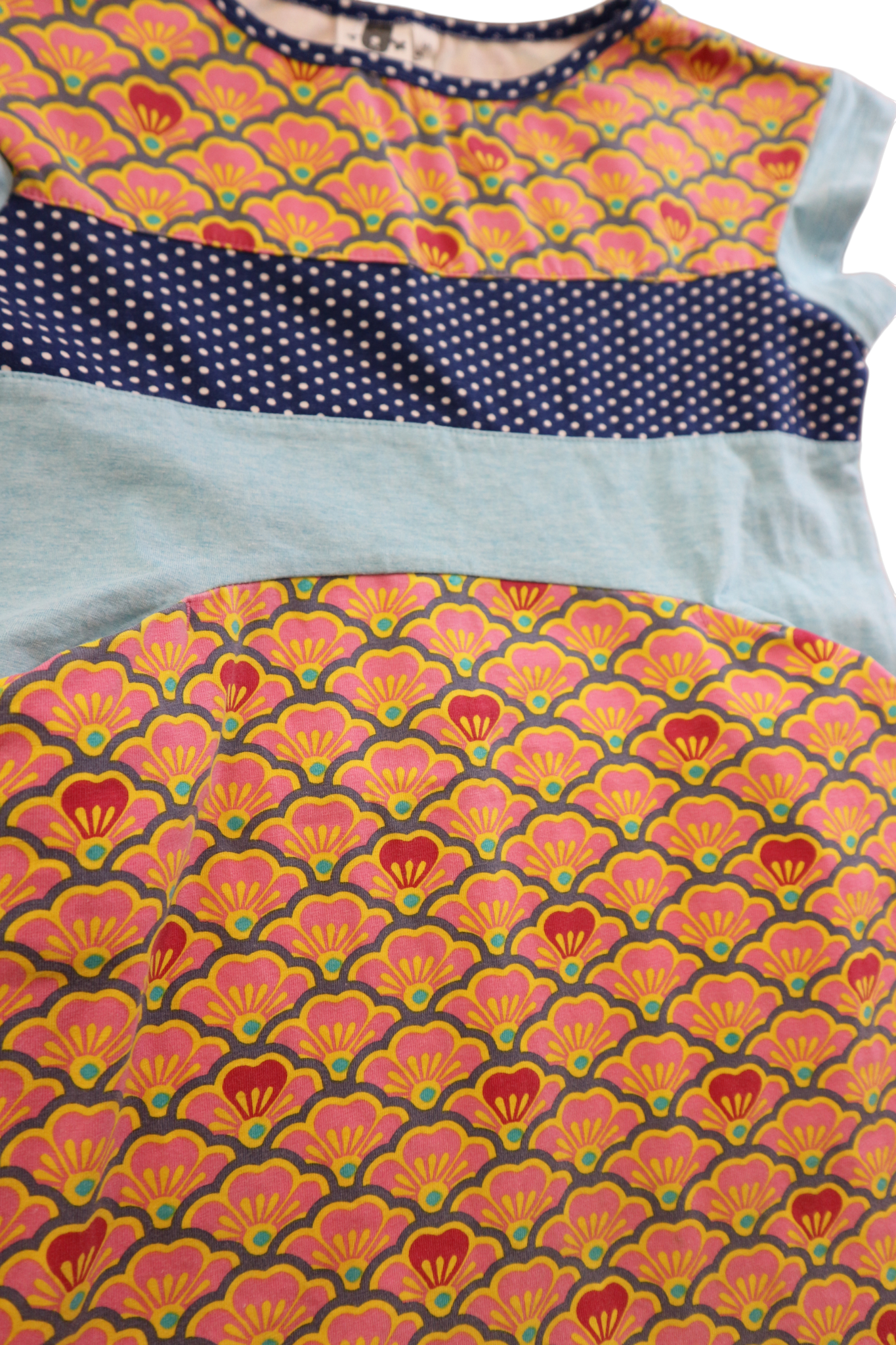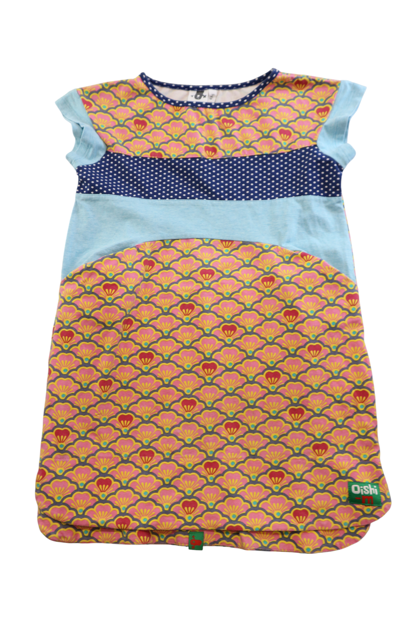 Oishi-m multi print dress with side pockets in size 5-6yrs. Cotton/elastane.