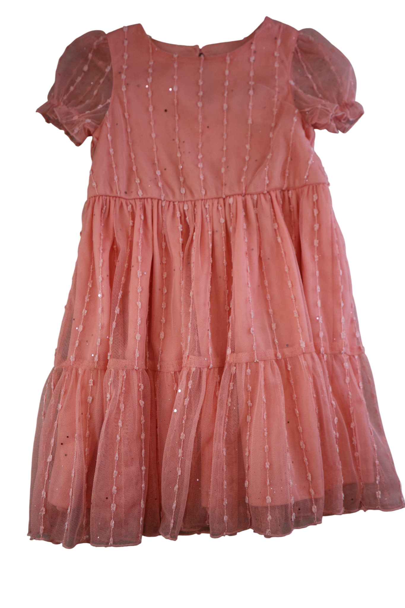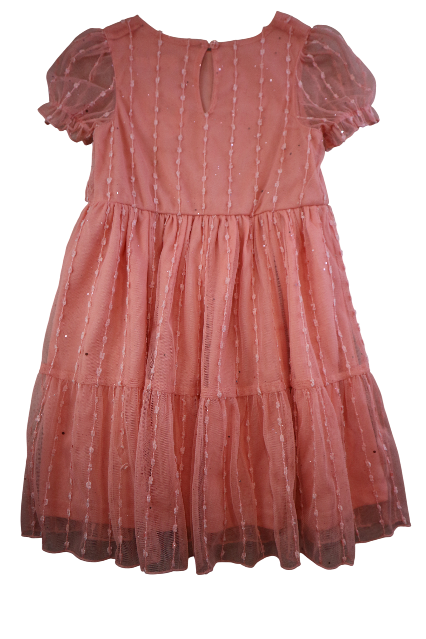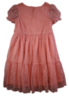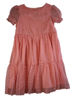 Twirl and shine in this adorable pink mesh overlay party dress! Perfect for special occasions, this charming style features a delicate mesh layer that catches the light beautifully. The playful design is ideal for celebrations, photo moments, and making memories. Comfortable enough for all-day wear, it's a go-to choice for any young fashionista's wardrobe. Size 4 fits perfectly for kids ready to celebrate in style.