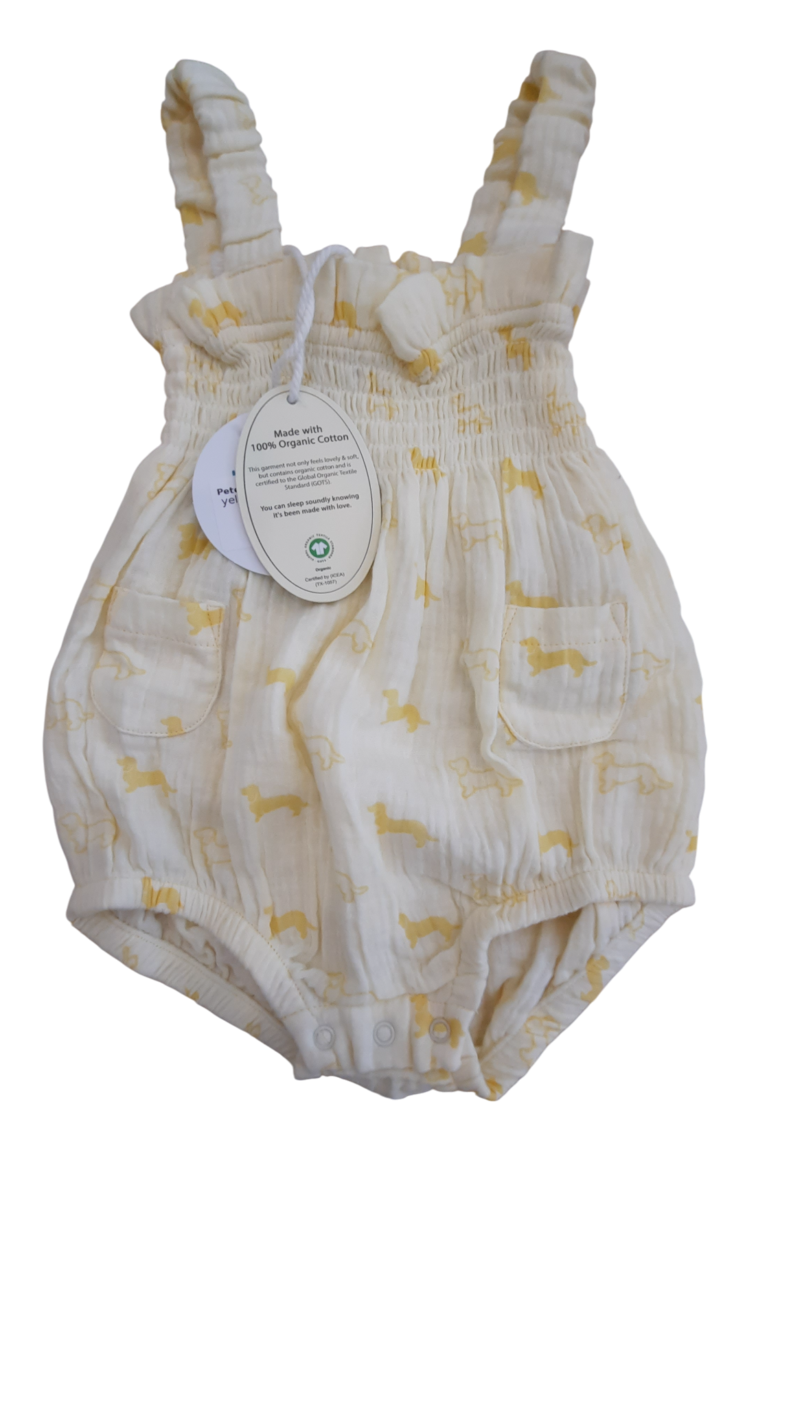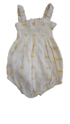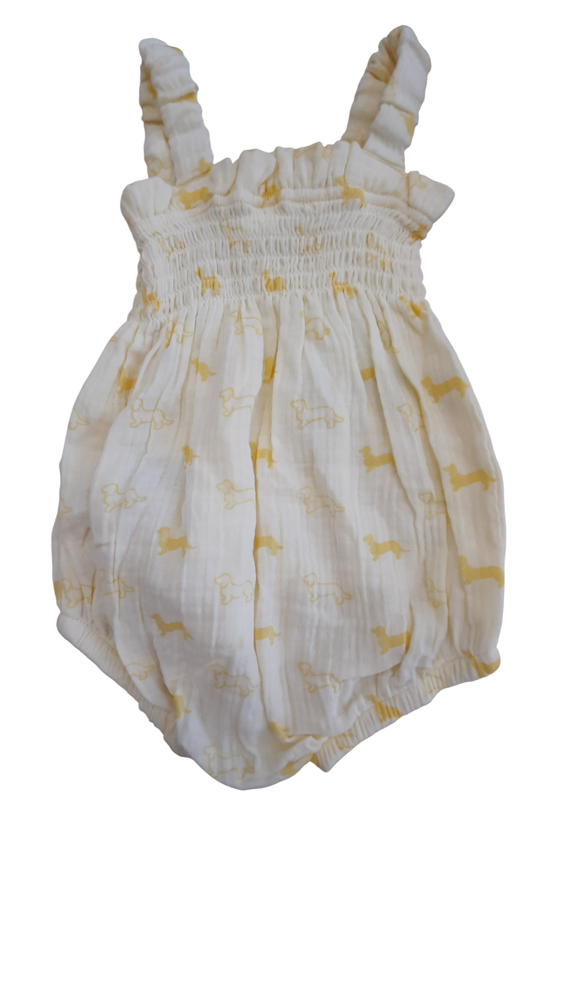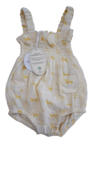 Meet the romper that'll have everyone smiling! This cheerful light yellow one-piece features an adorable dachshund print that's sure to spark conversations. Perfect for playtime or cuddles, it's the kind of outfit that makes getting dressed fun for little ones. Comfy, cute, and ready for all those precious moments worth capturing. NWT.
