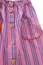 Piupiuchick button-front skirt in purple with stripe and front pockets, size 4. 100% cotton.