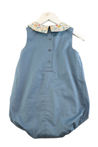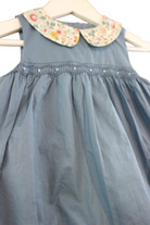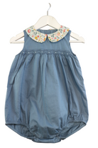 Pretty Wild playsuit in blue with smocking detail and floral collar, size 3. Cotton.