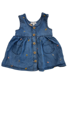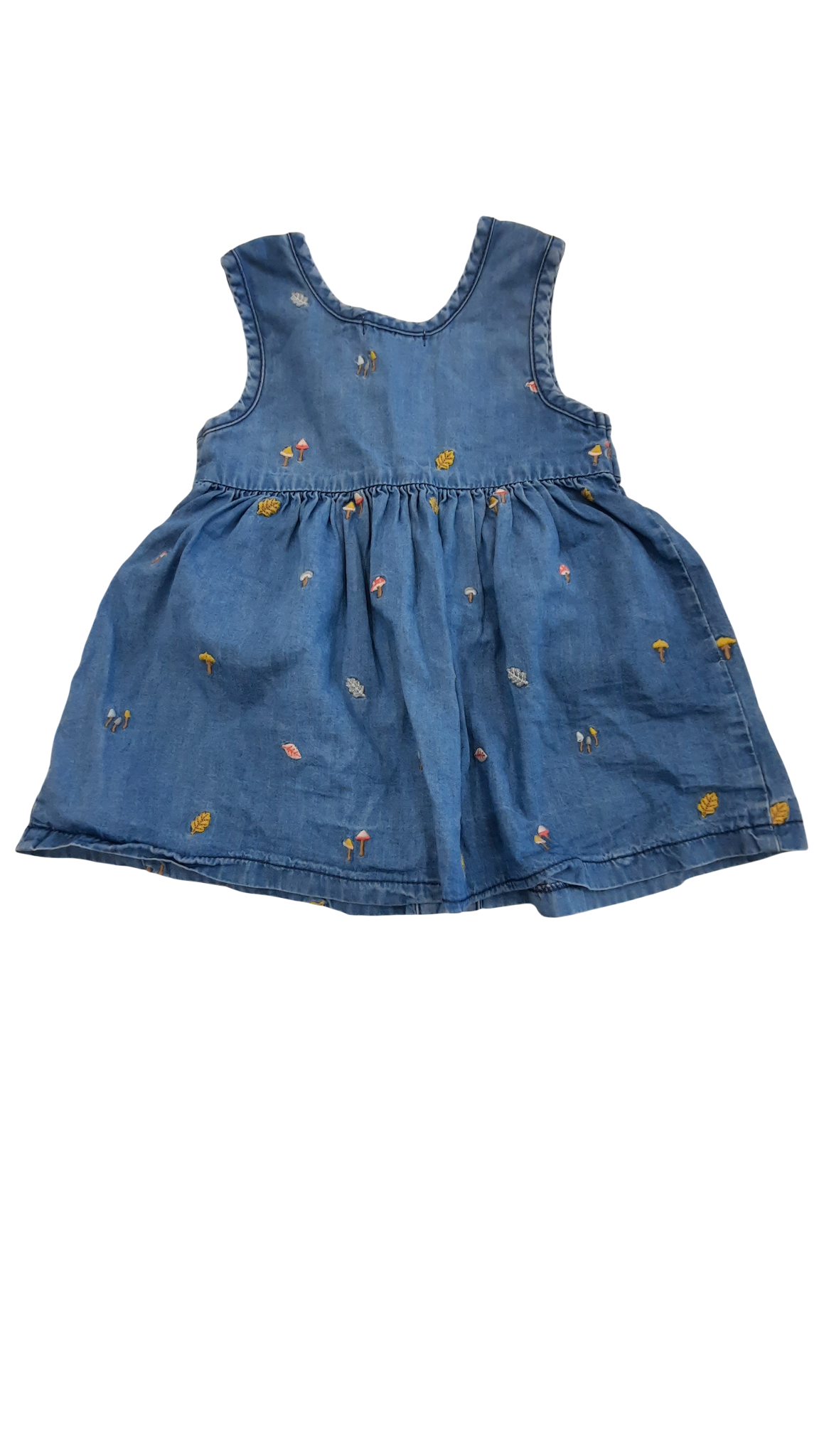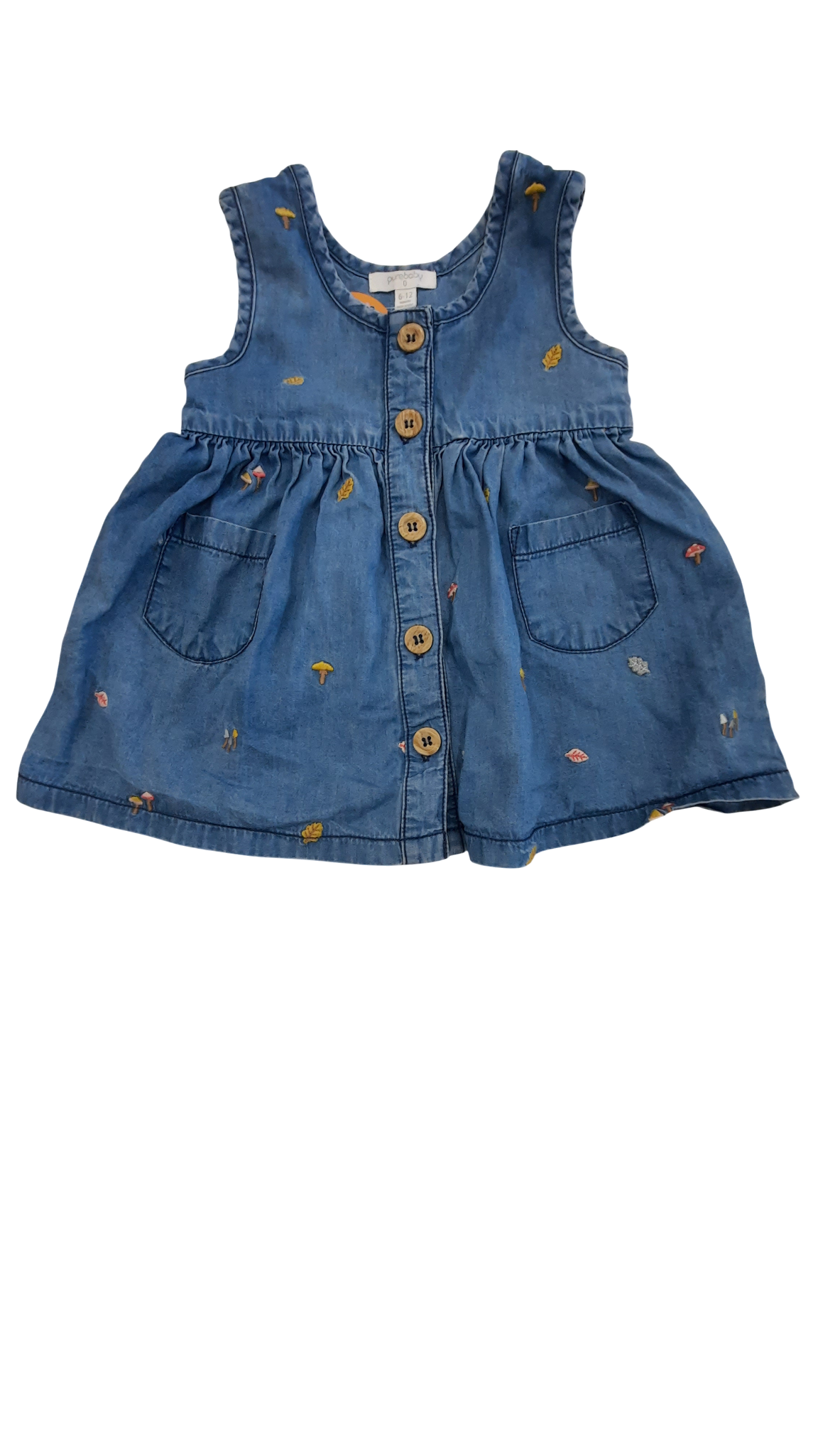 Adorable chambray dress perfect for little ones who love nature-inspired style. This sweet piece features delicate embroidered leaf and mushroom details that bring whimsy and charm to everyday wear. Soft, breathable fabric keeps your baby comfortable all day long, while the playful design sparks joy and imagination. Ideal for playdates, family outings, or cosy days at home. A delightful wardrobe essential that celebrates the magic of the great outdoors! Very good preloved condition.
