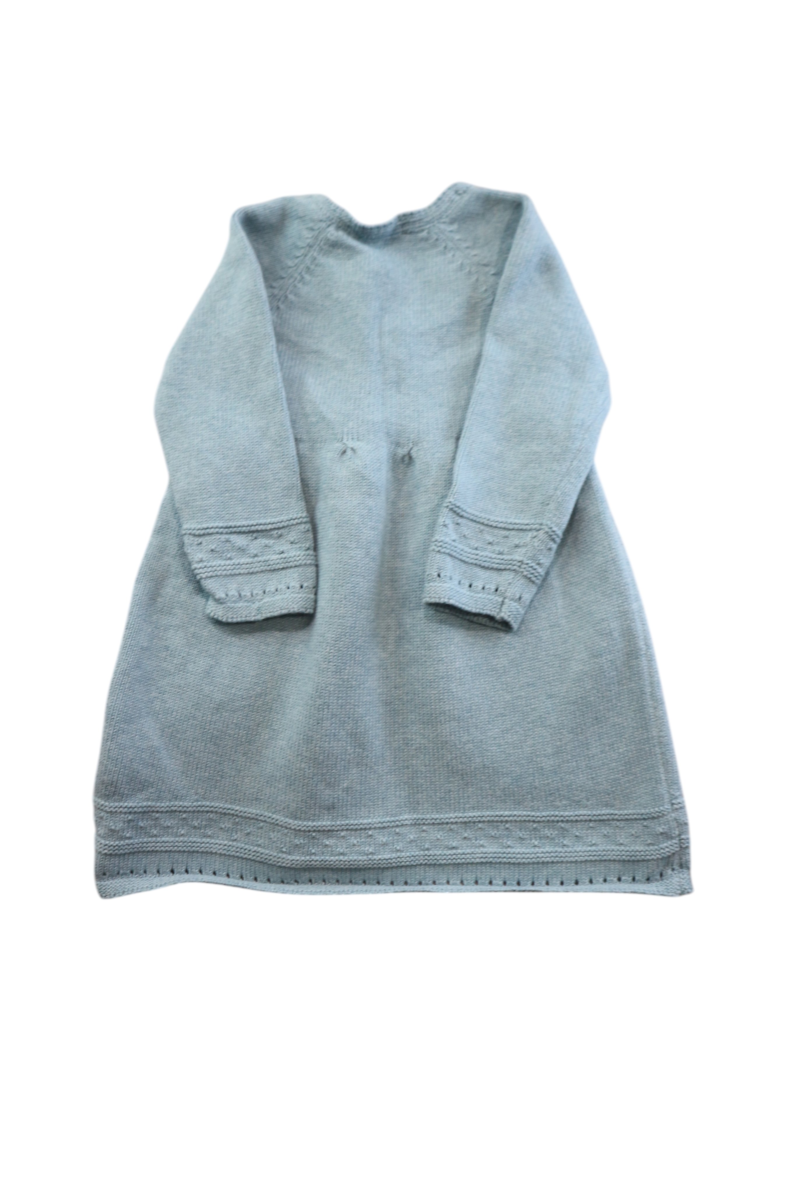 Purebaby knit dress in teal, size 12-18m. 92% organic cotton, 8% wool.