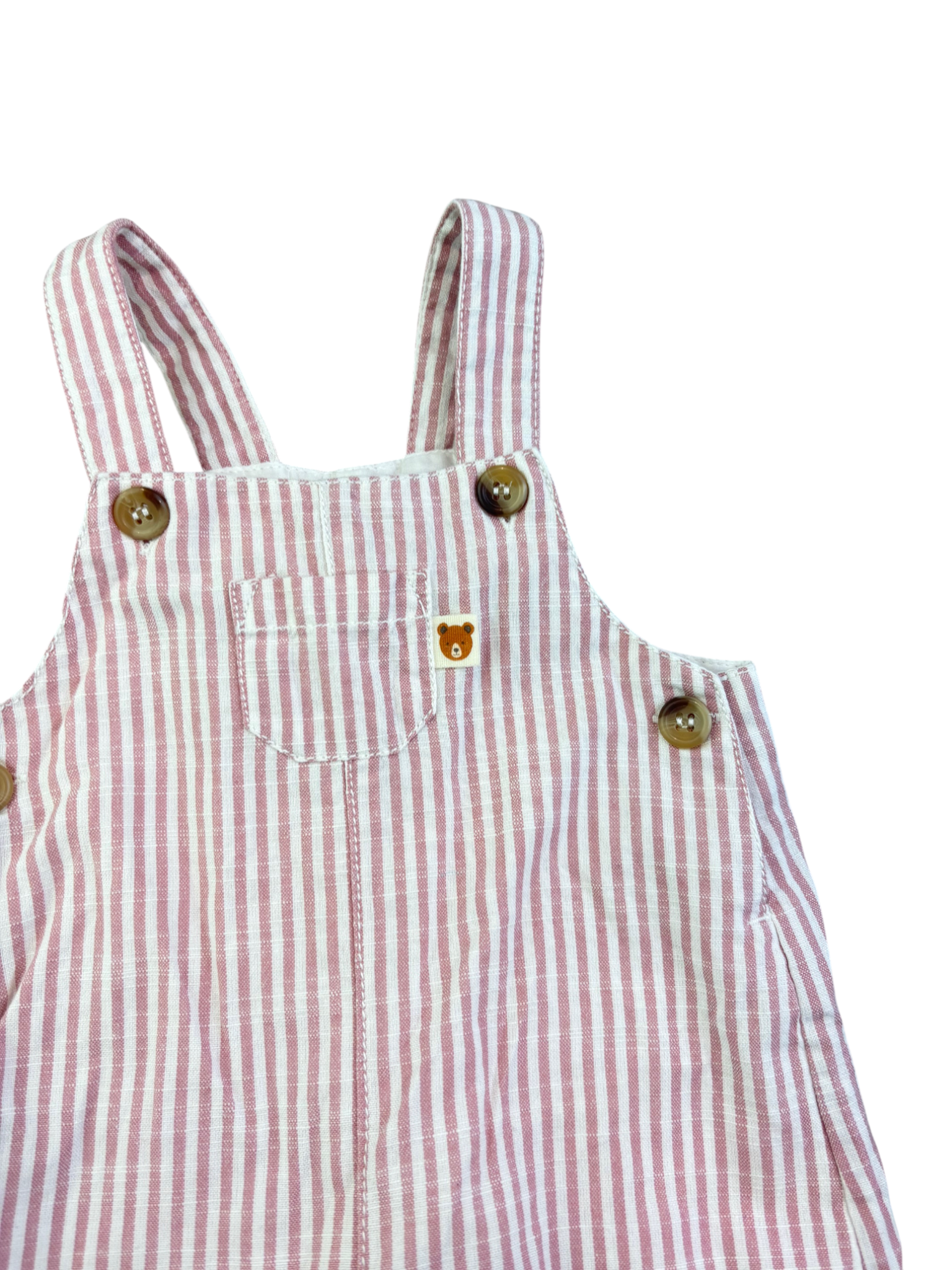 Cute pink and white striped overalls for tiny adventurers! These size 000 overalls feature adjustable straps, a cute pocket detail, and ultra-soft fabric. Perfect for playtime and everyday layering.