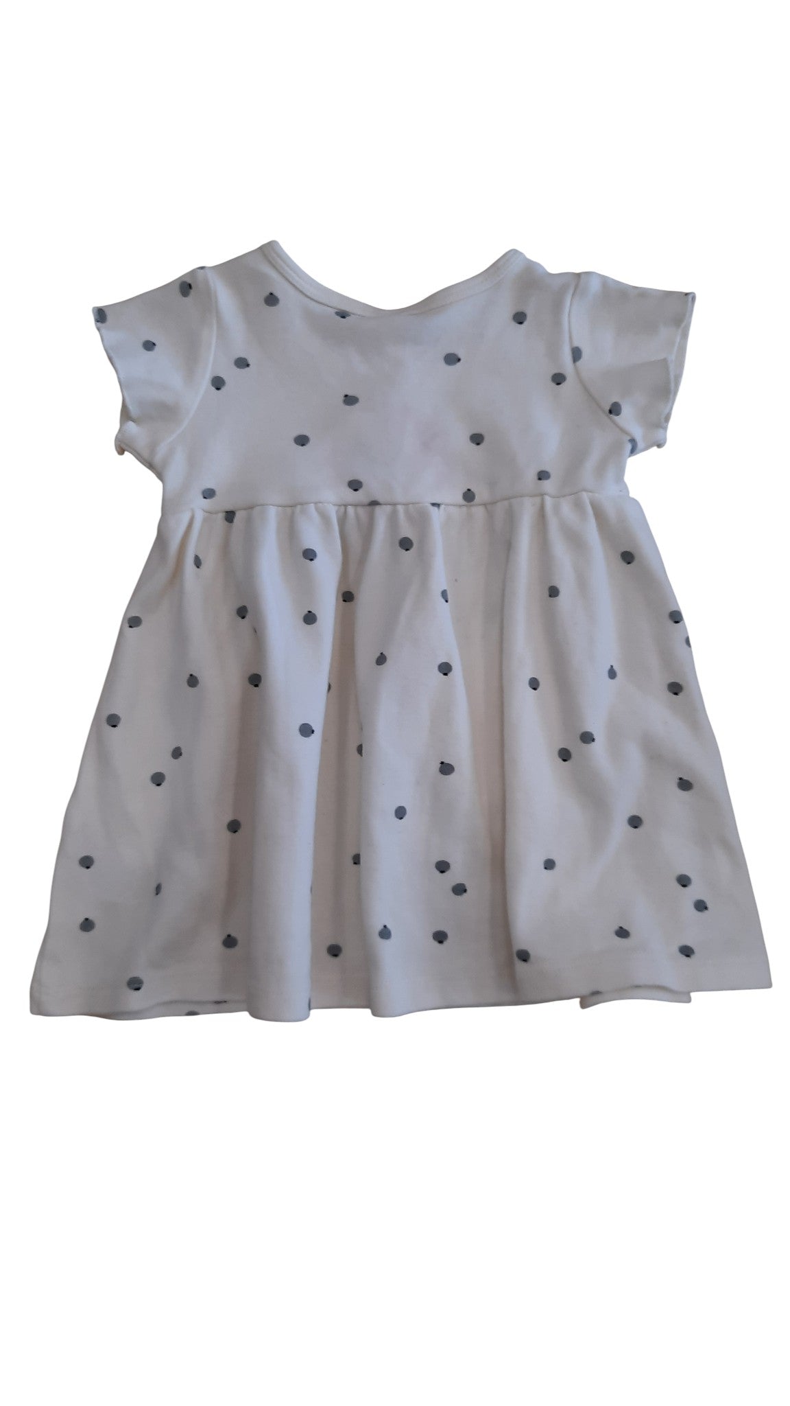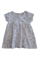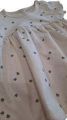 Quincy Mae cream dress with grey print, size 12-18m. 100% organic cotton.
