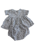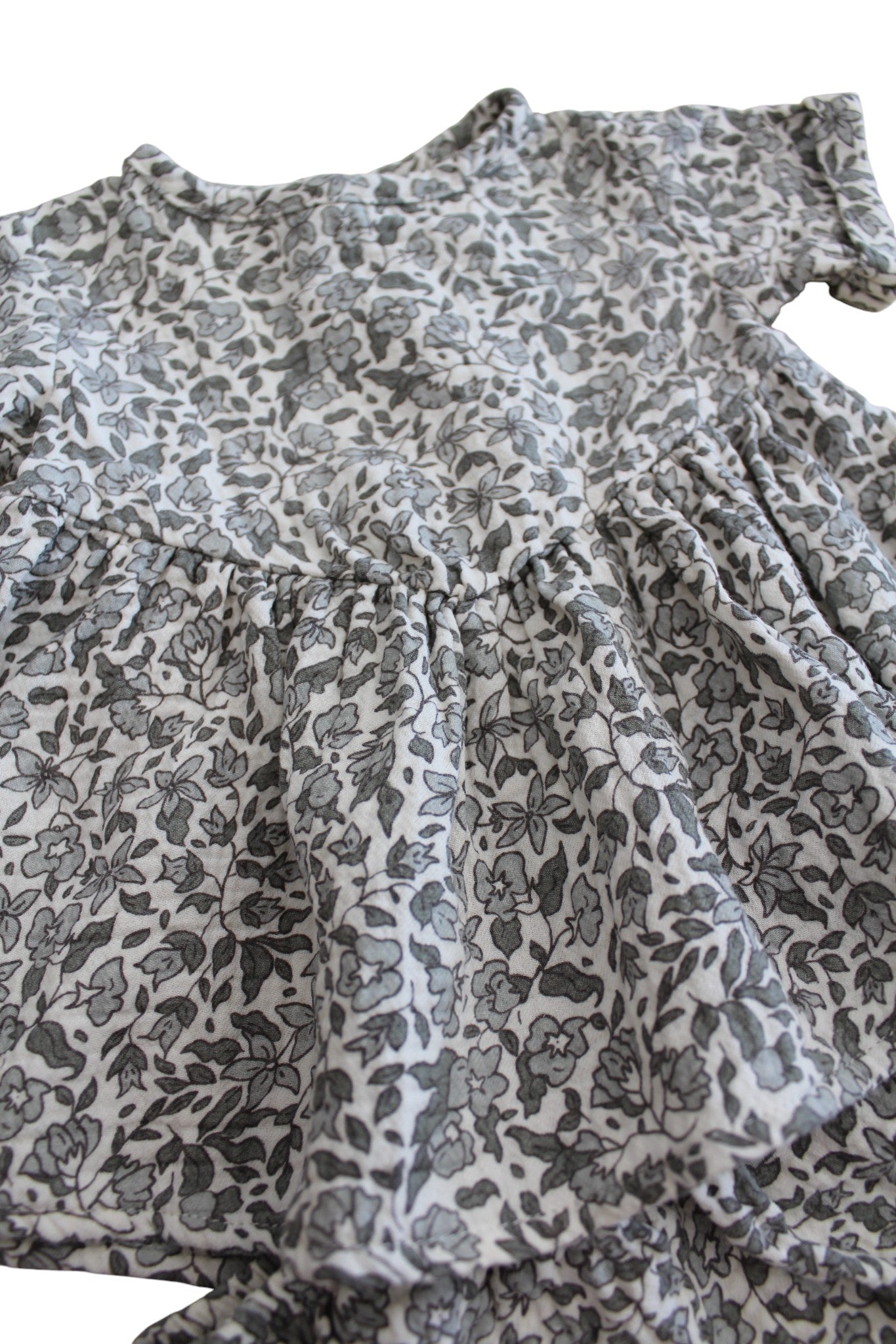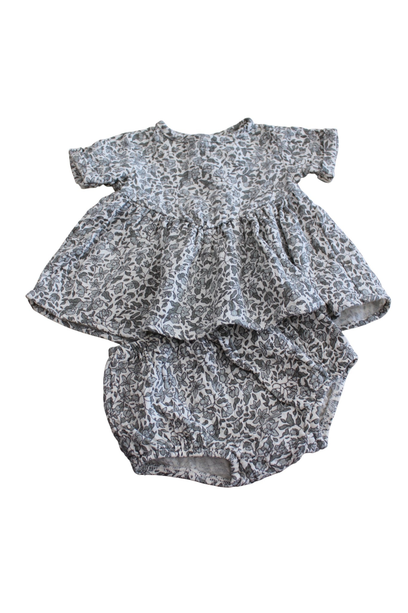 Quincy Mae dress with bloomers set in grey floral, size 000. 100% organic cotton.