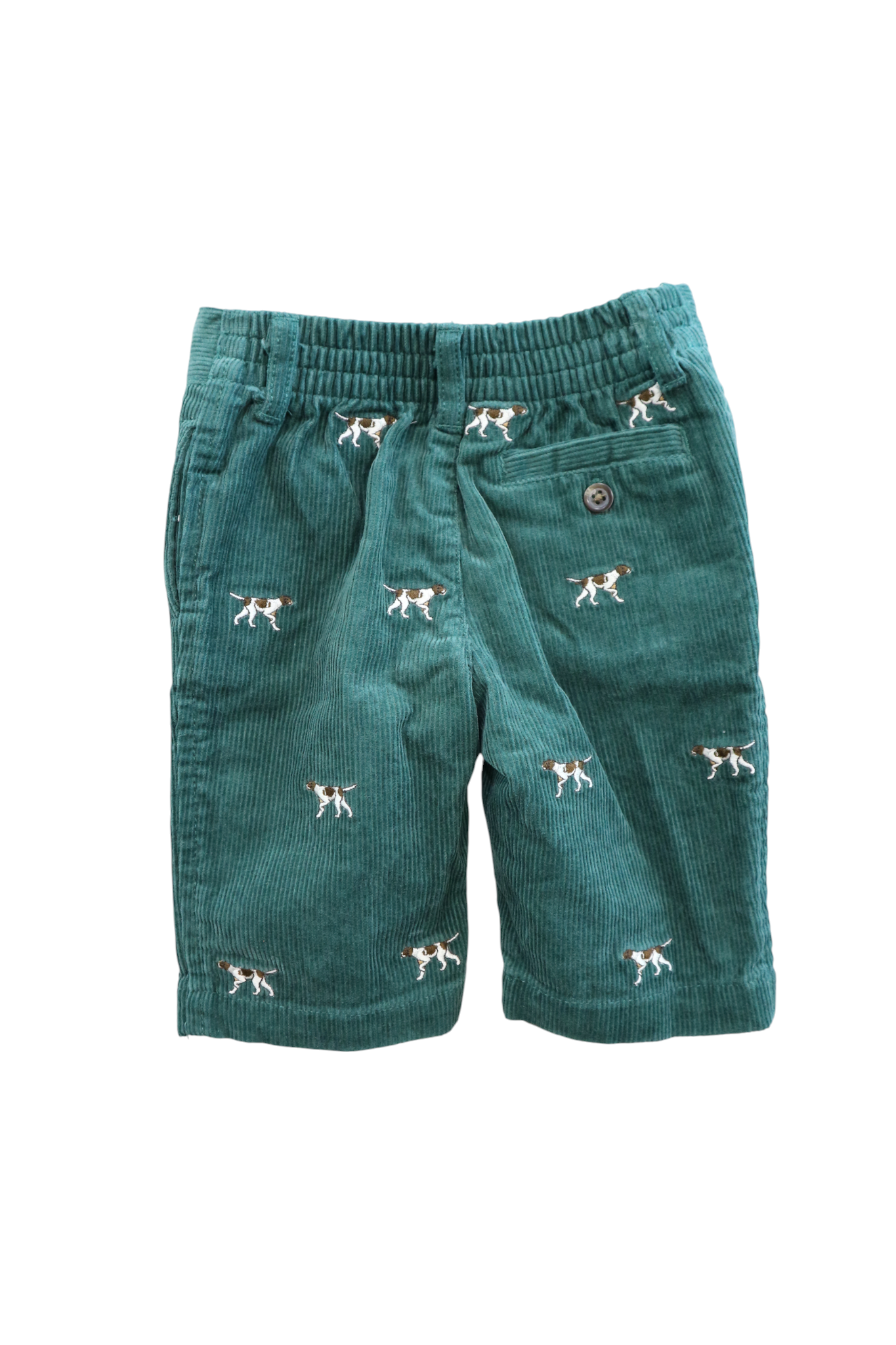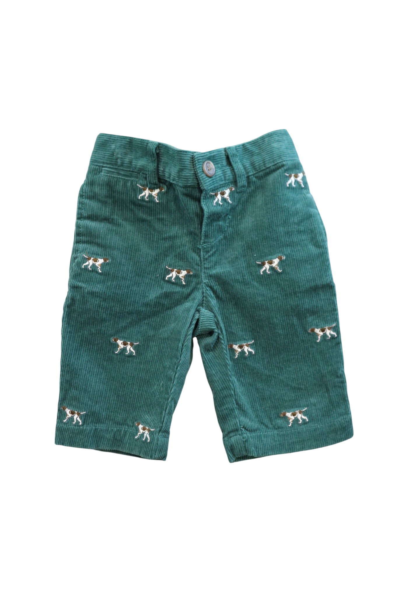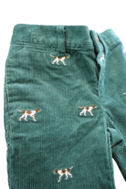Ralph Lauren green corduroy pants with embroidered dogs feature, size 000. 100% cotton.