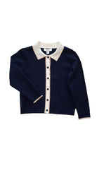 Reiss navy button up cardigan with rhinestone collar, size 5-6yrs. Viscose/polyester/polyamide/elastane.