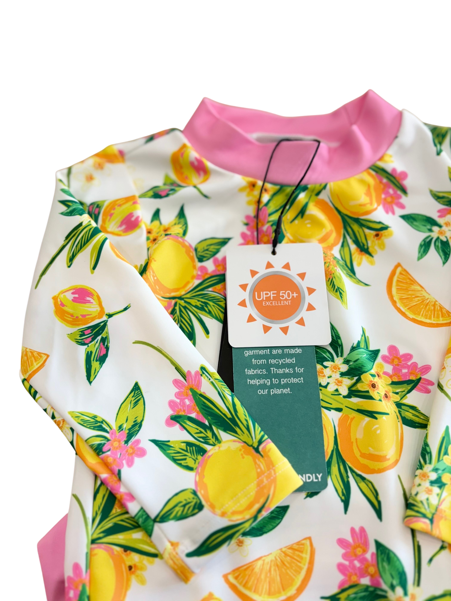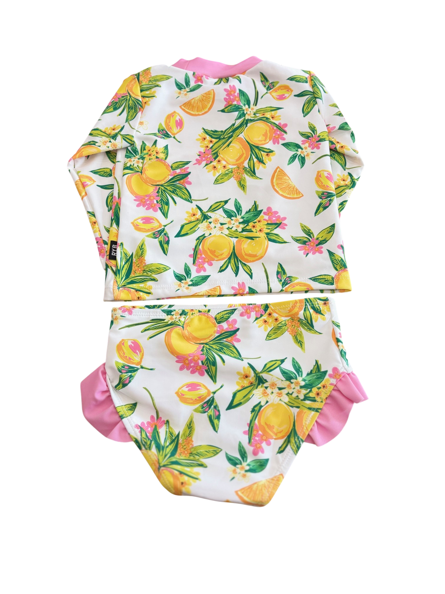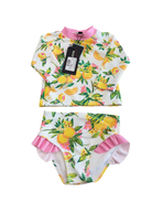 Rock Your Baby clementine baby rashie set inwhote with floral print, size 1. Polyester/elastane.