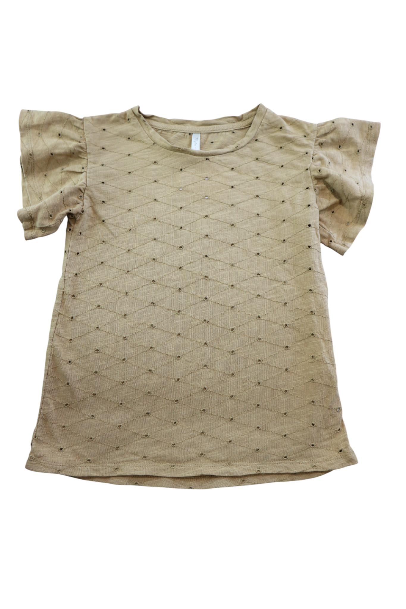 Rylee & Cru brown flutter sleeve t-shirt in size 6-7yrs. 100% cotton.