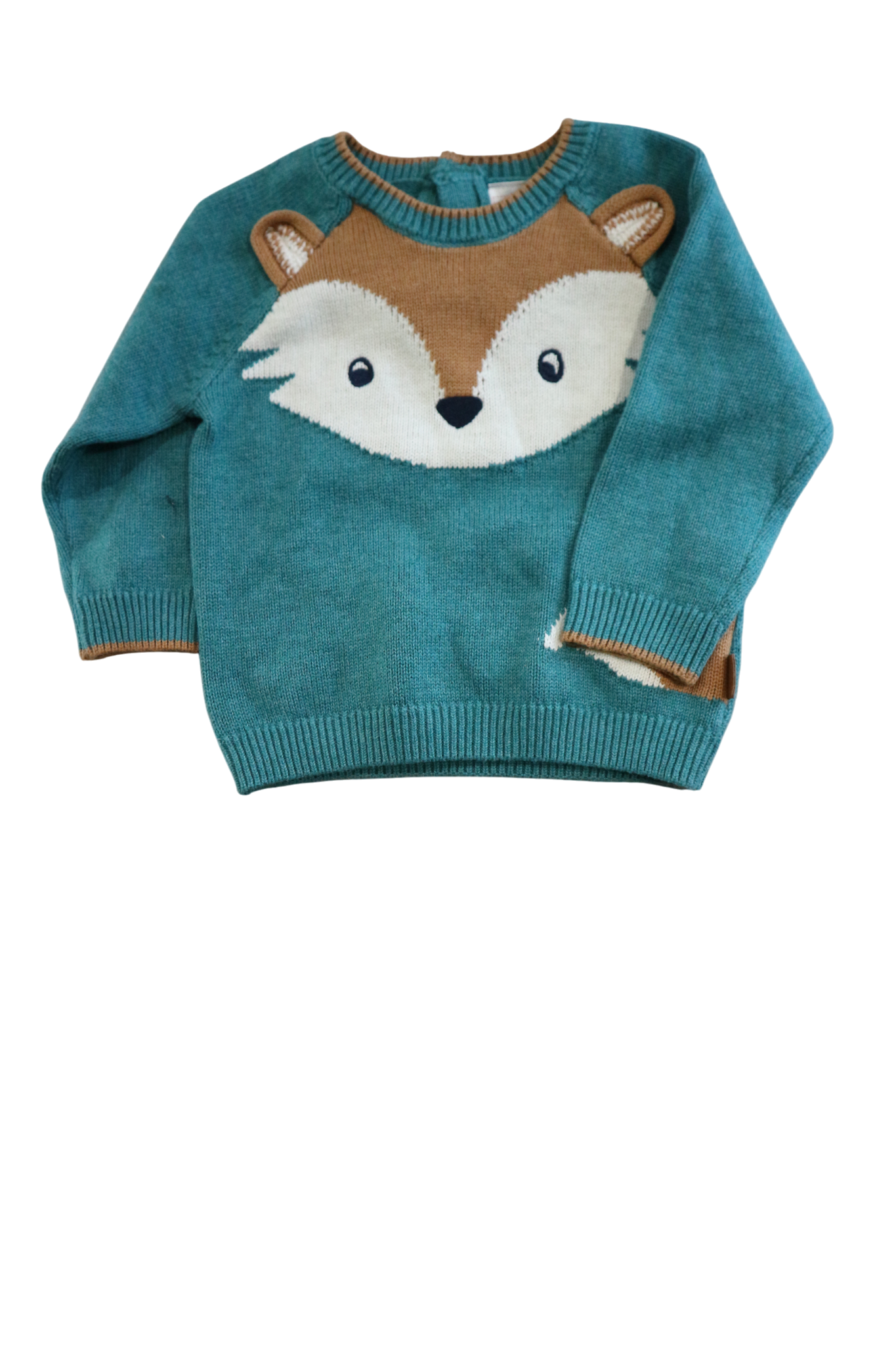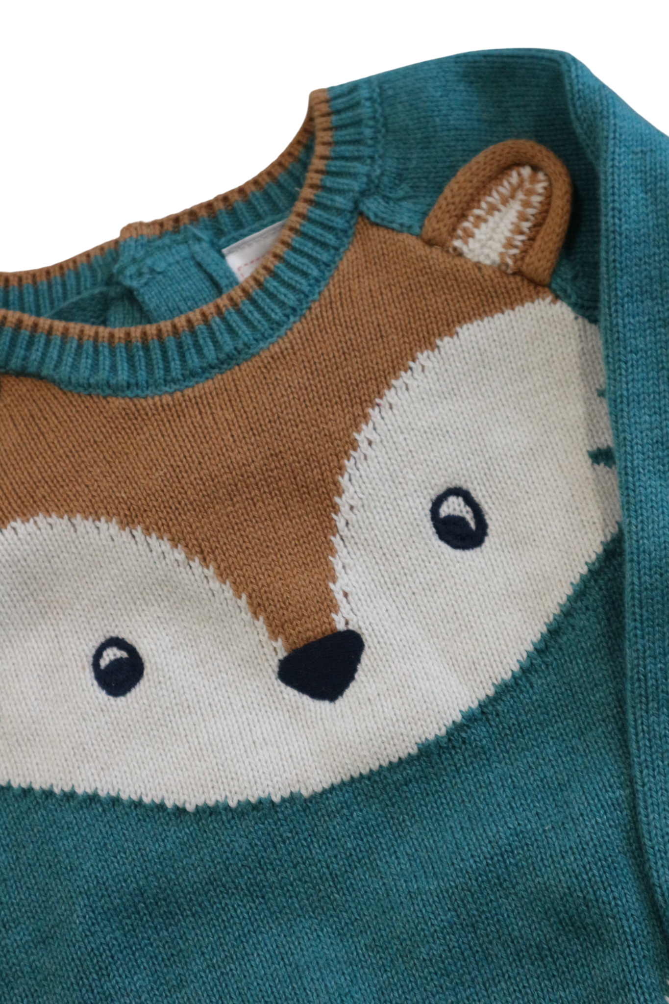 Keep your little one cozy and adorable with this playful fox design baby knit jumper. Crafted from soft, breathable yarn, it provides gentle warmth and comfort, perfect for all-day wear. The charming fox motif adds a touch of whimsy, making it a delightful choice for everyday adventures and special moments alike. Easy to layer and care for, this jumper is as practical as it is cute. Great condition.