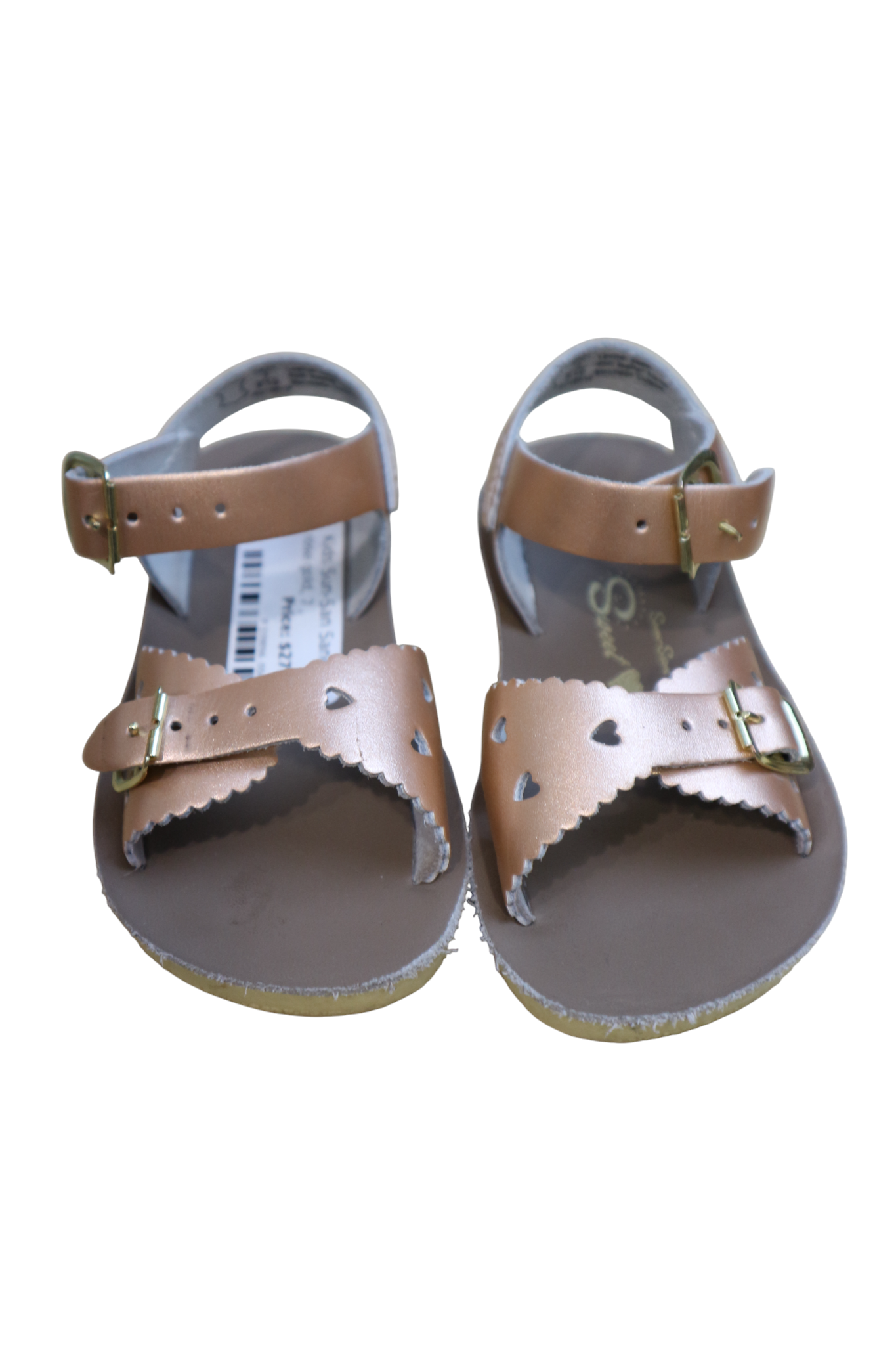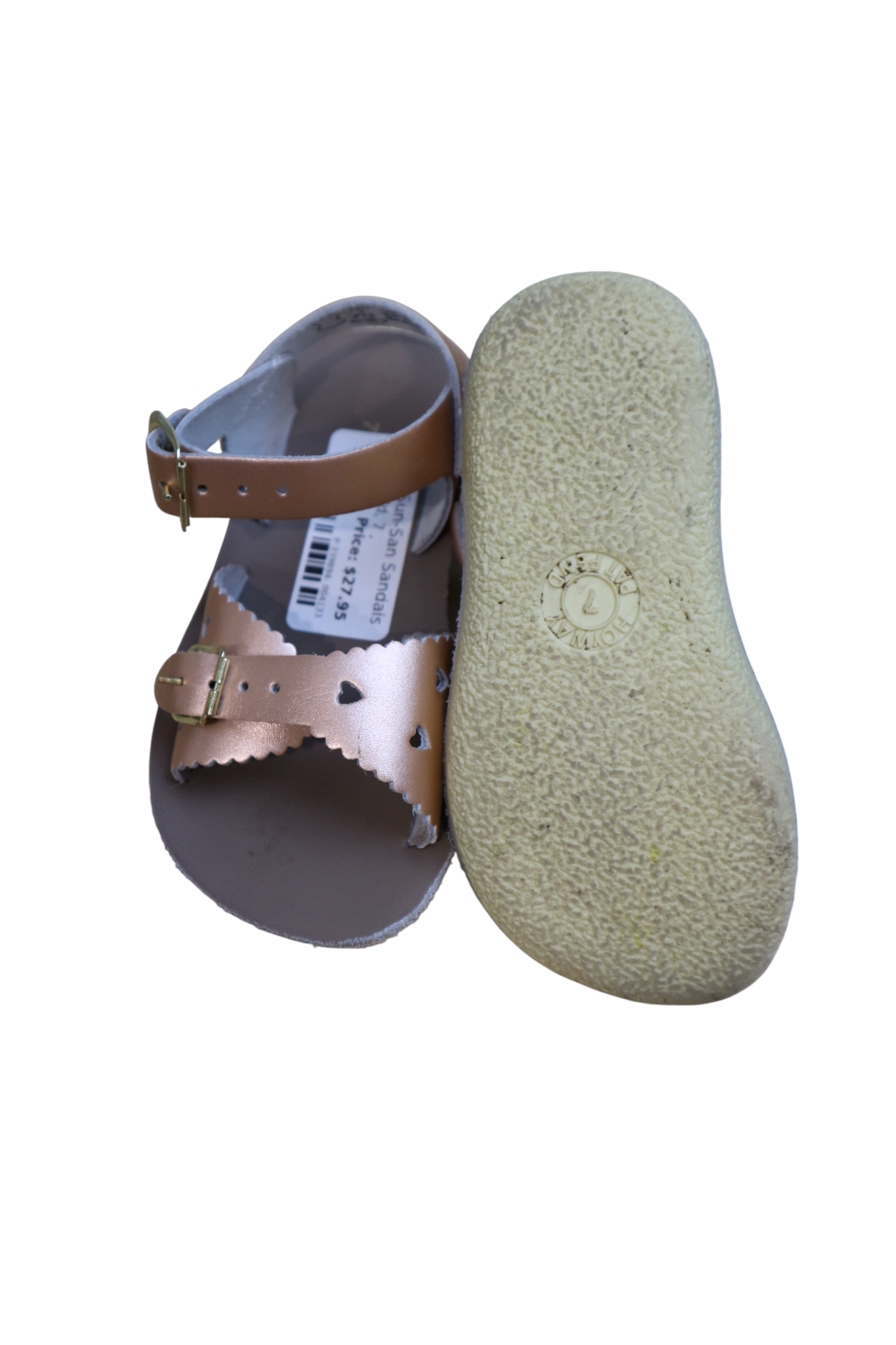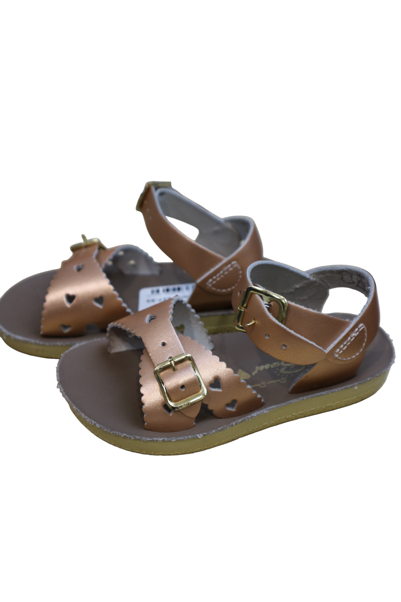 Sun San sweet heart sandals in rose gold, size US 7. Leather.