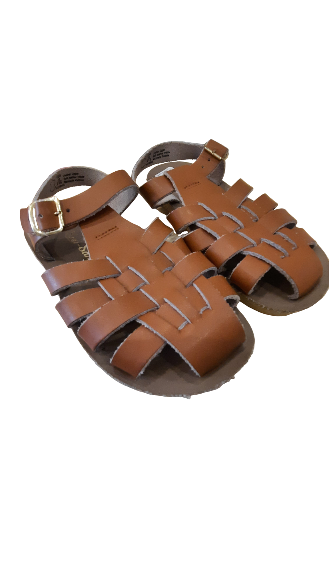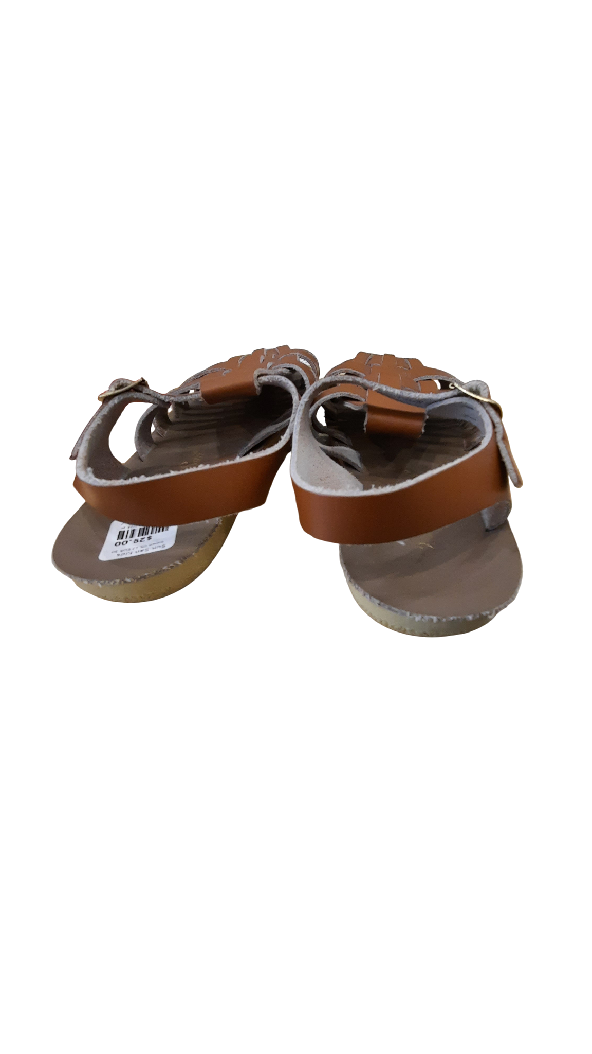Sun-San Sandals are the perfect companion for little adventurers! These unisex brown sandals offer comfy, durable wear that keeps up with active kids. The classic design works for any occasion—from beach days to casual outings—while the sturdy construction means they'll handle whatever playtime throws their way. Sized at US 12/EUR 30, they're ready to take your child on their next adventure. Simple, reliable, and built to last through all the fun! Good condition, some wear.