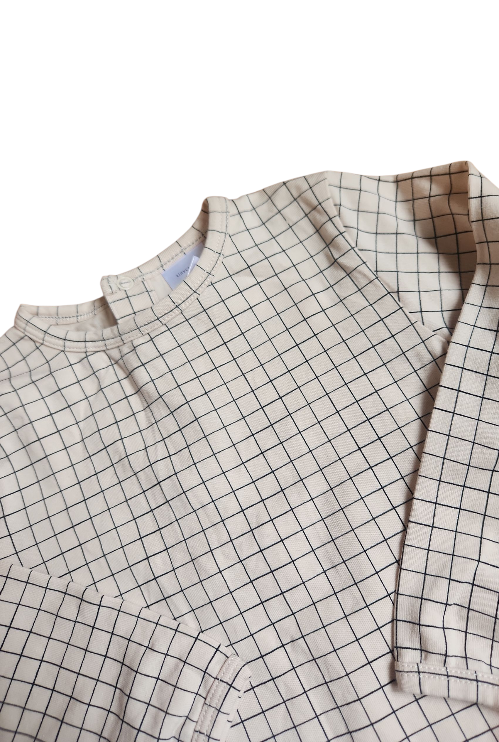 Introducing the Tiny Cottons Jumpsuit, a stylish and comfortable outfit for your little one. Made with a primary cotton and elastane blend, this jumpsuit features a grid pattern that is perfect for toddlers. Keep your child looking cute and feeling cozy with this high-quality jumpsuit. Very good condition.