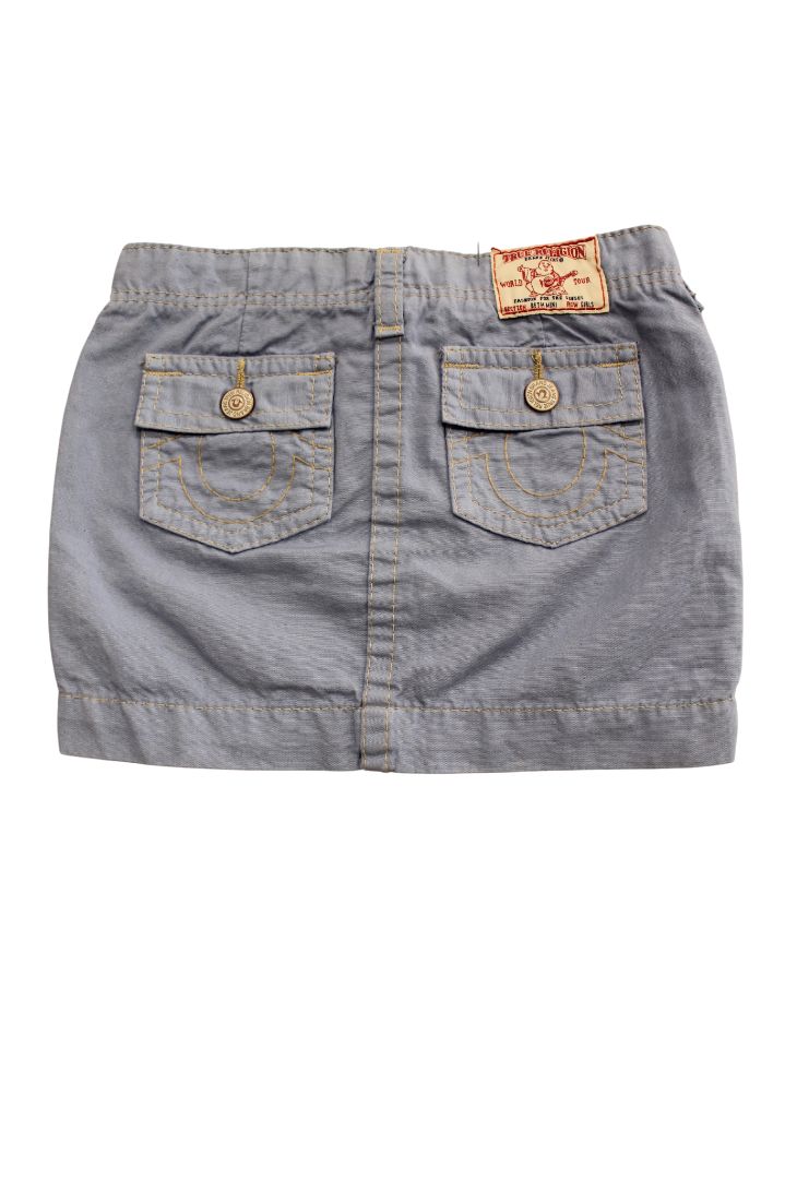 Introducing our True Religion Skirt, size 10. This stylish skirt features a beautiful blue color and eye-catching contrast stitching. Perfect for kids, it's a versatile piece that can be dressed up or down for any occasion. Complete your little one's wardrobe with this must-have addition. Great condition.