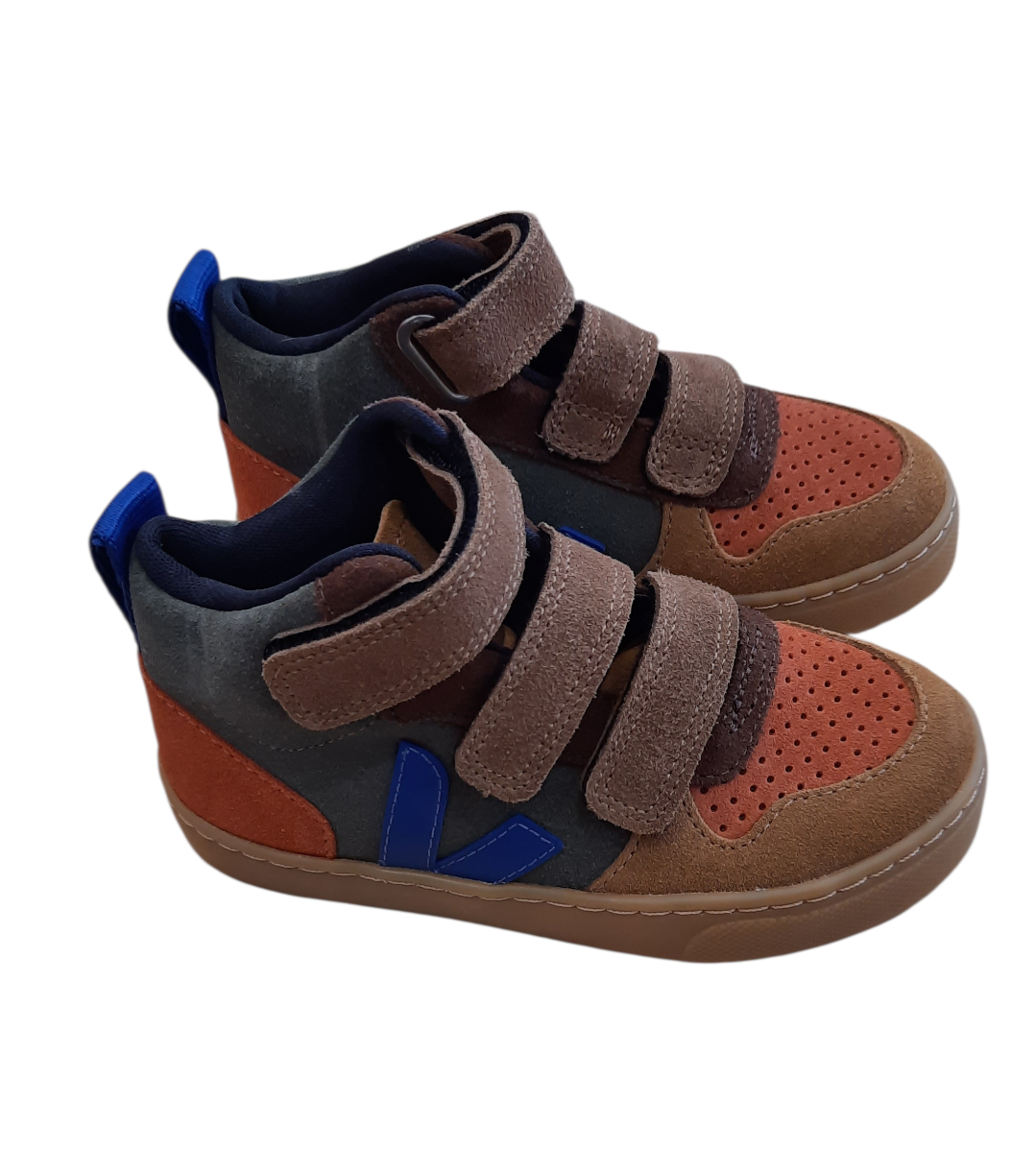 Elevate your ittle ones everyday style with these Veja high-top sneakers in rich earthy tones. Crafted from suede, they feature convenient velcro straps for easy on-and-off wear. Size EU 28/US 11.