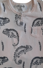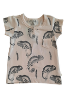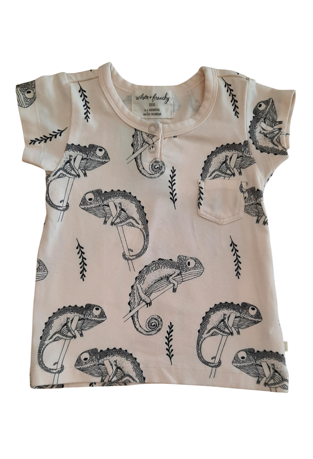 Meet your new baby essential: a cream Henley tee with a playful chameleon print. Wonderfully soft and stretchy thanks to organic cotton, bamboo and elastane composition, it's designed for tiny comfort in size 000. Excellent condition.