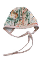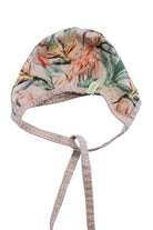 Willow pink with floral print baby bonnet. Approx. size 000.