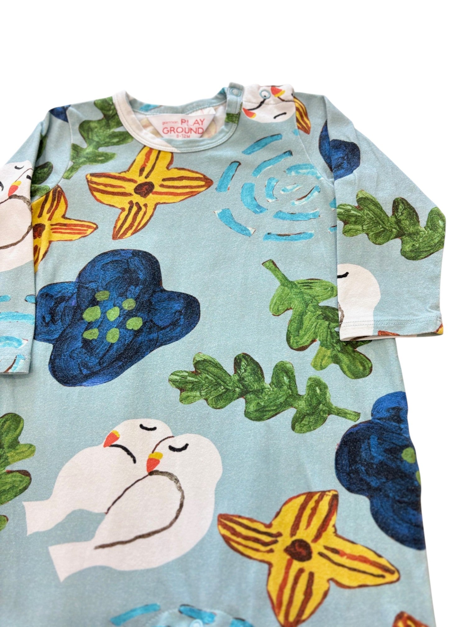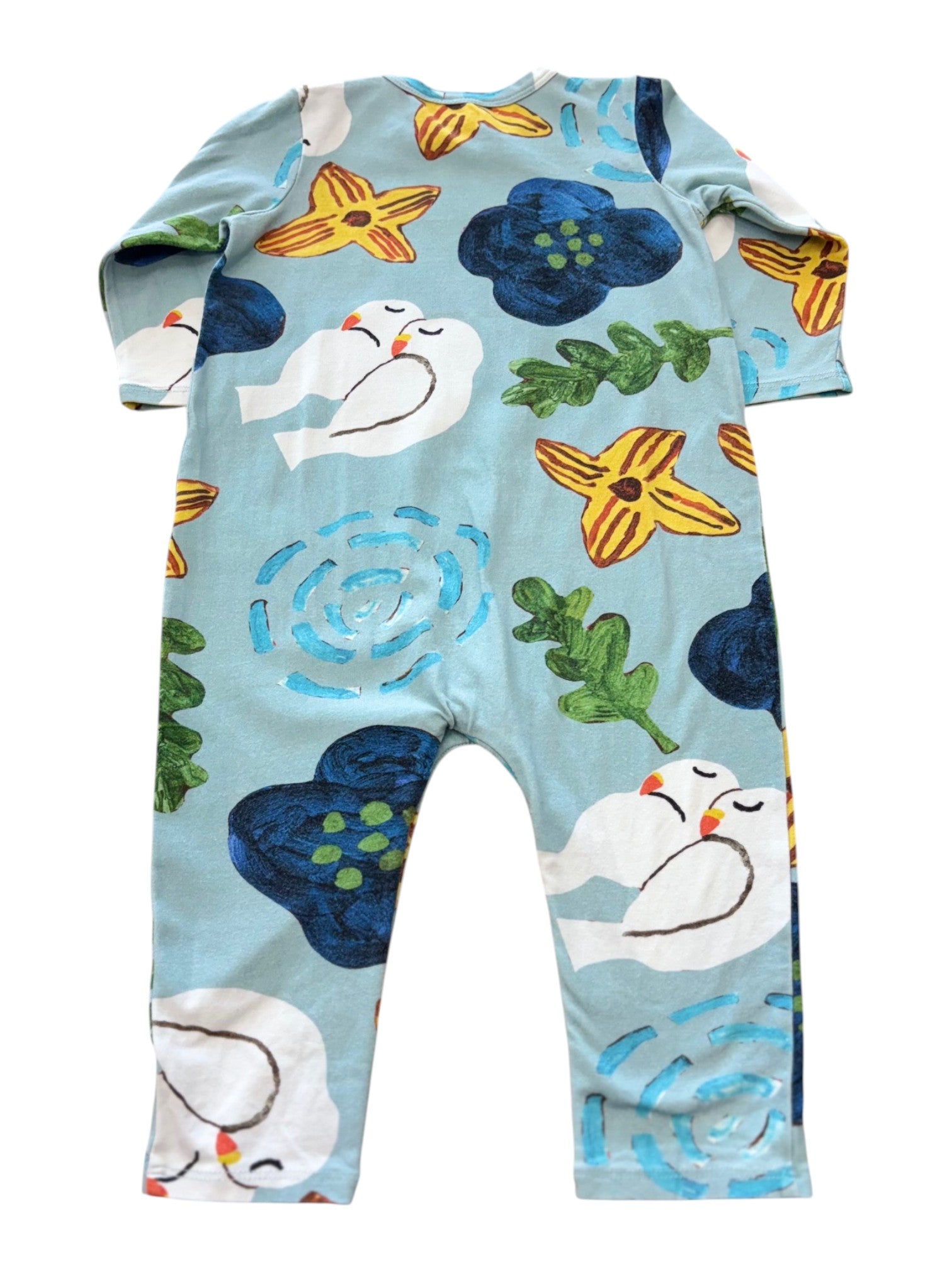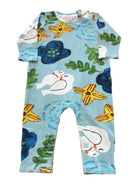 One piece, endless fun! This lightweight blue jumpsuit keeps babies comfy in a stretchy organic cotton and elastane blend. The funky multicoloured print brings instant personality to any outfit, while the easy all-in-one design makes dressing a breeze.