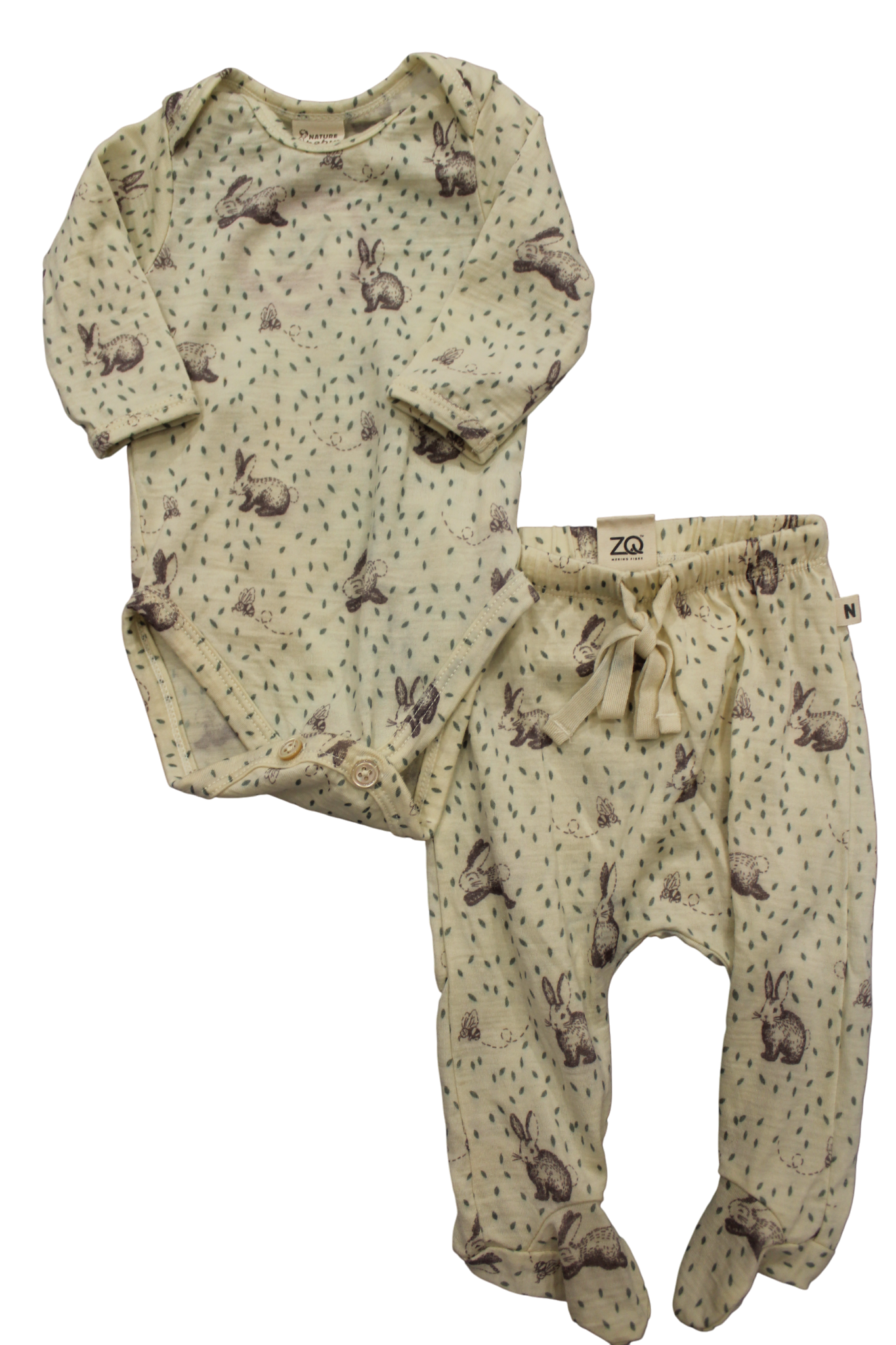 Hop into comfort with this precious Nature Baby 2 Piece Set! Crafted from luxuriously soft merino wool, this outfit keeps your little one cosy and regulated through all seasons. The adorable bunny print adds a touch of woodland charm that's perfect for cuddles and playtime. Merino wool naturally breathes, wicks moisture, and maintains temperature, making it ideal for sensitive baby skin. This two-piece set offers versatility—mix and match pieces for endless outfit combinations. Gentle, sustainable, and utterly charming, it's the perfect choice for parents who want quality and cuteness wrapped into one. A snuggly essential that'll have your bub looking absolutely hoppy!