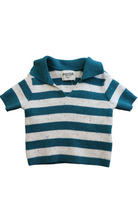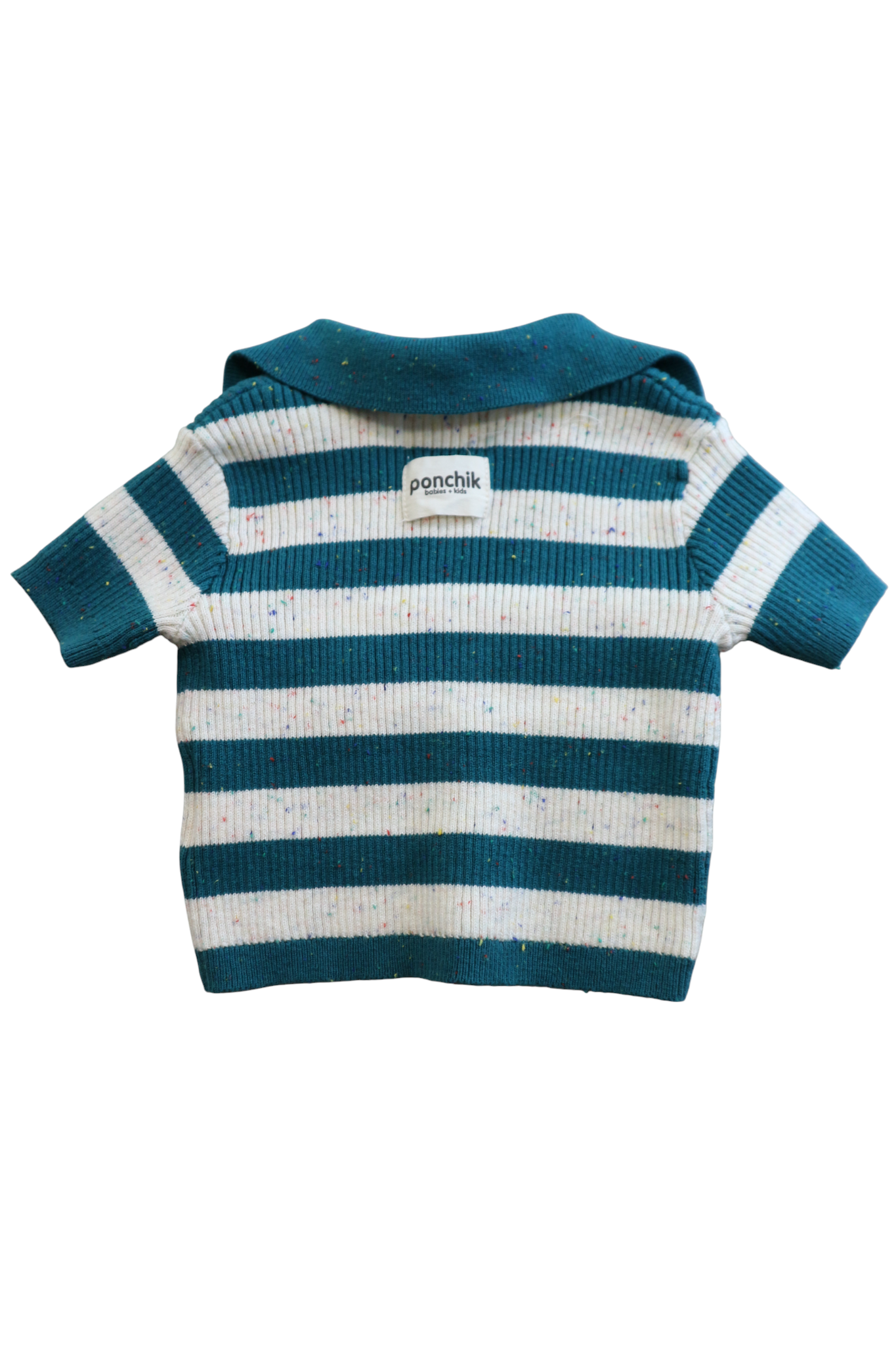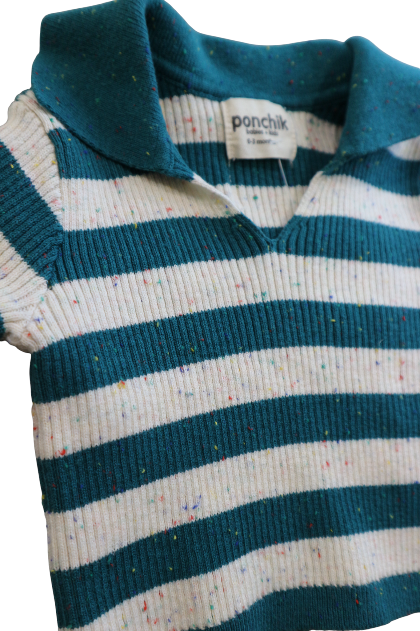 Ponchik collared rib knit tee in green + cream speckle, size 000. 100% cotton.