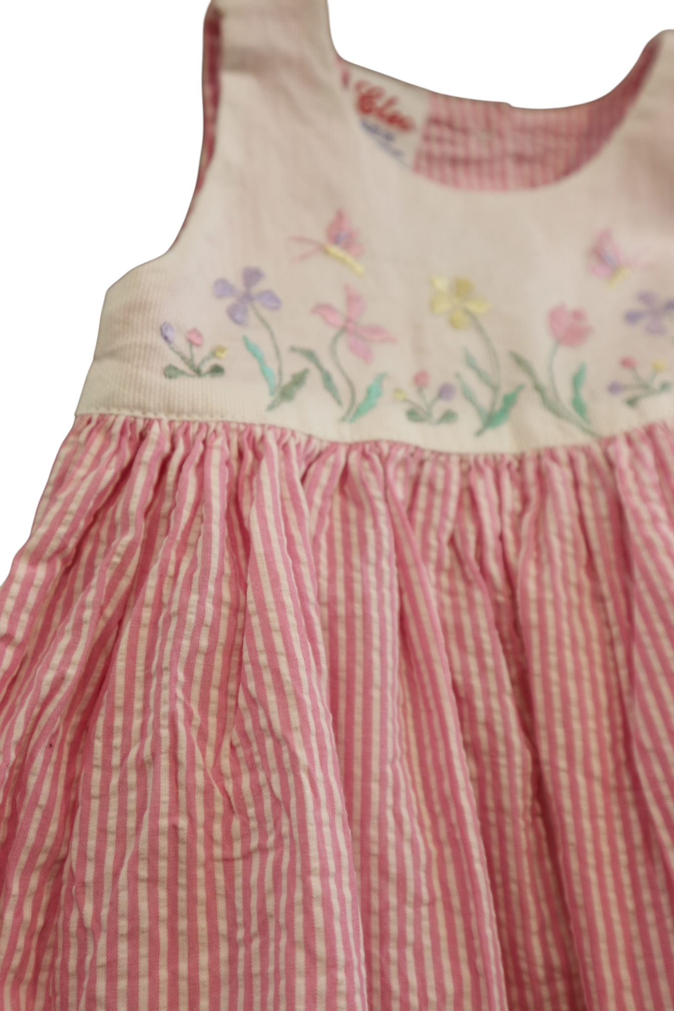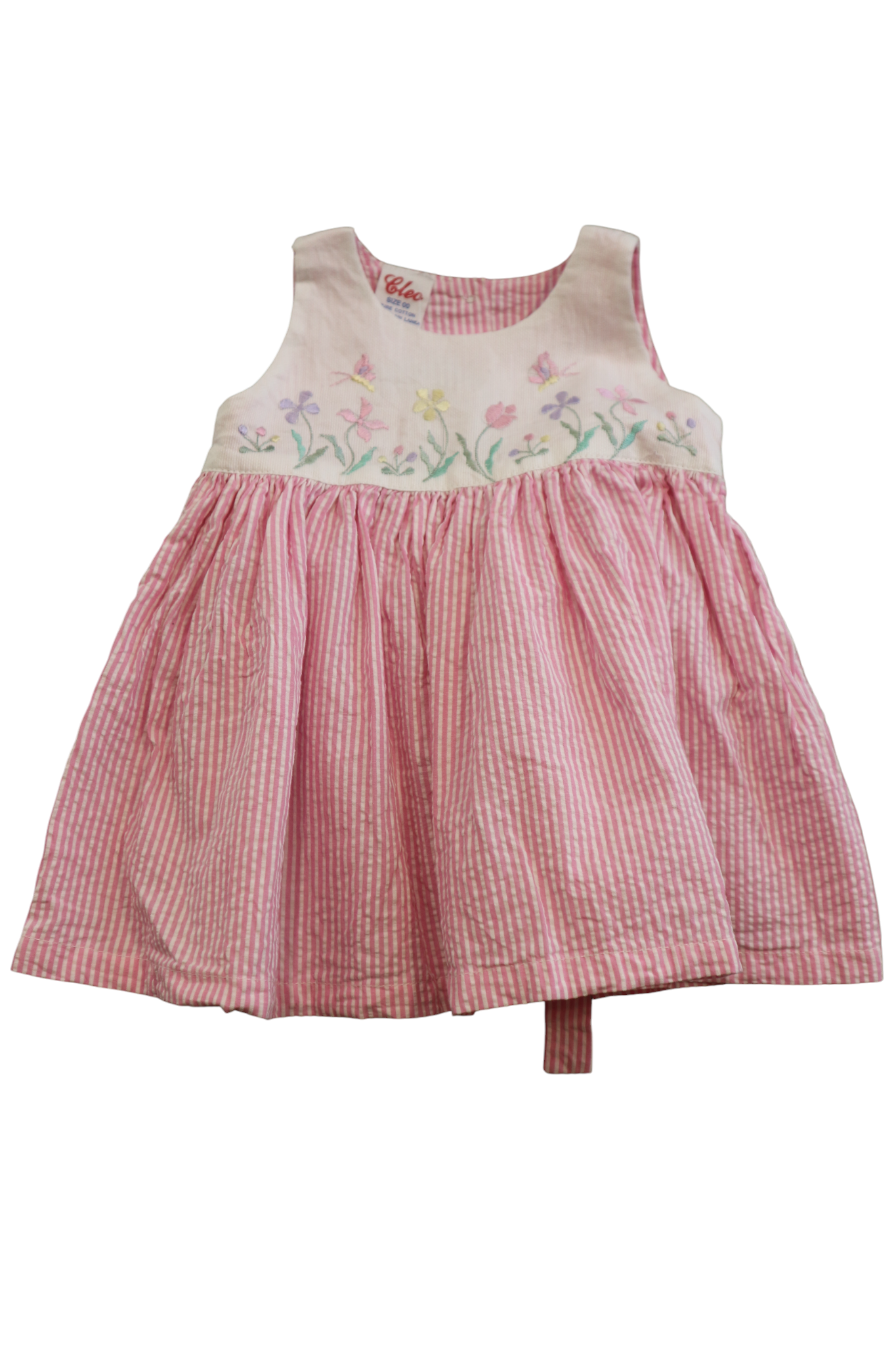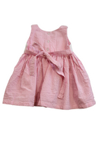 Cleo tie waist dress in pink and white stripe with embroidery feature, size 00. Cotton.