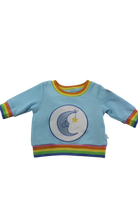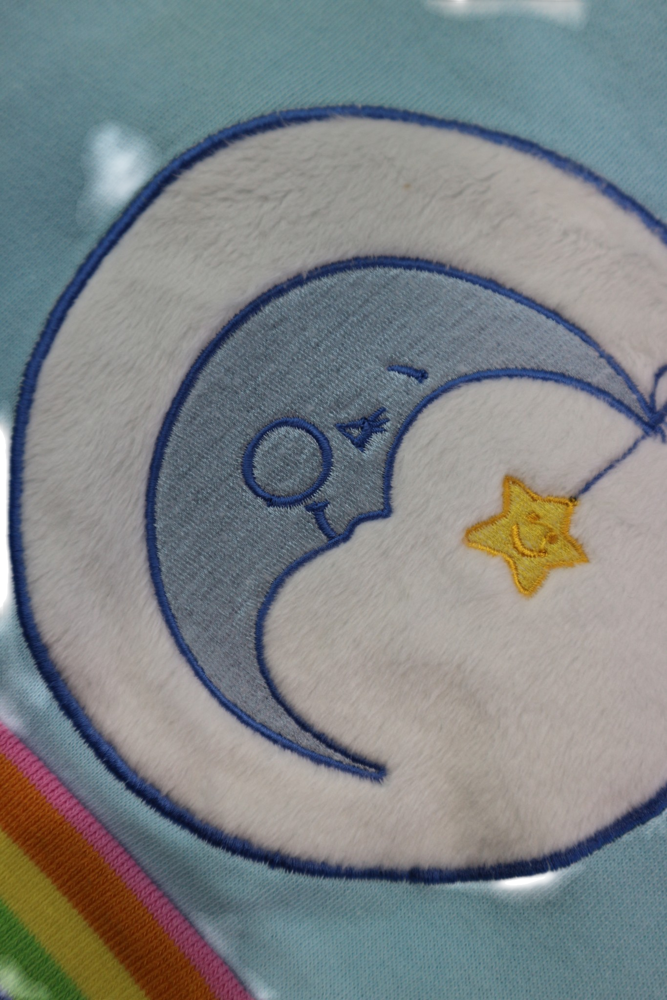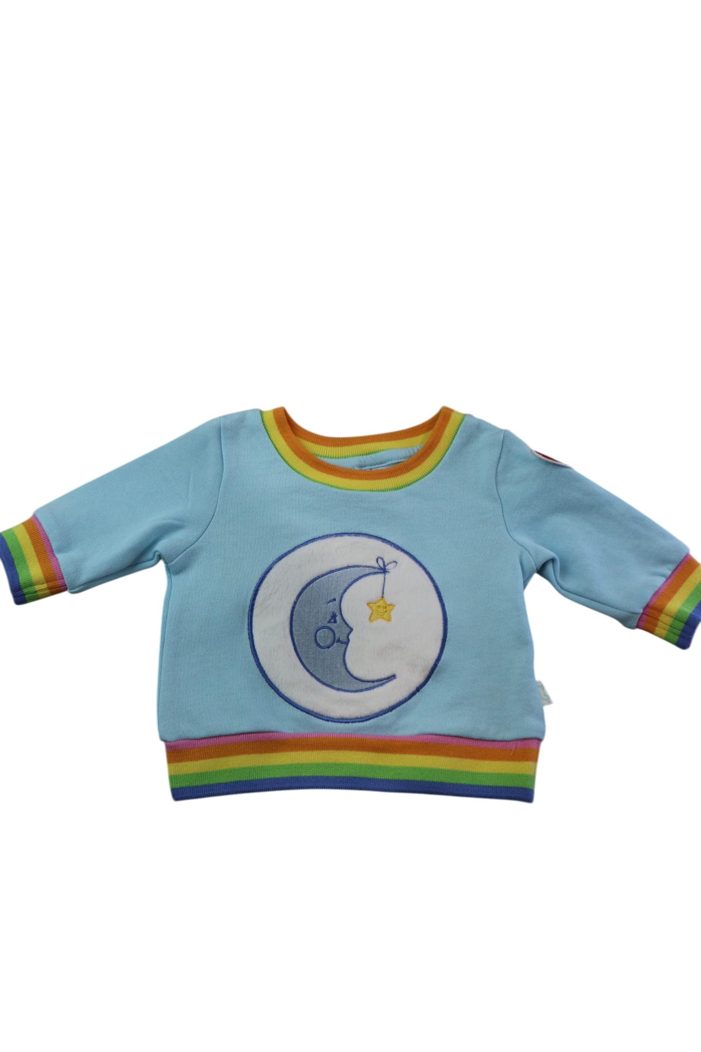 Snuggle up in sweet dreams with these adorable Care Bears pyjamas. The soft blue long-sleeved top features a charming moon and star motif on the front, finished with rainbow cuffing for a playful pop of colour. Matching purple bottoms showcase a cheerful Care Bears print. Perfect for little ones who love cosy bedtime comfort. Size 000.
