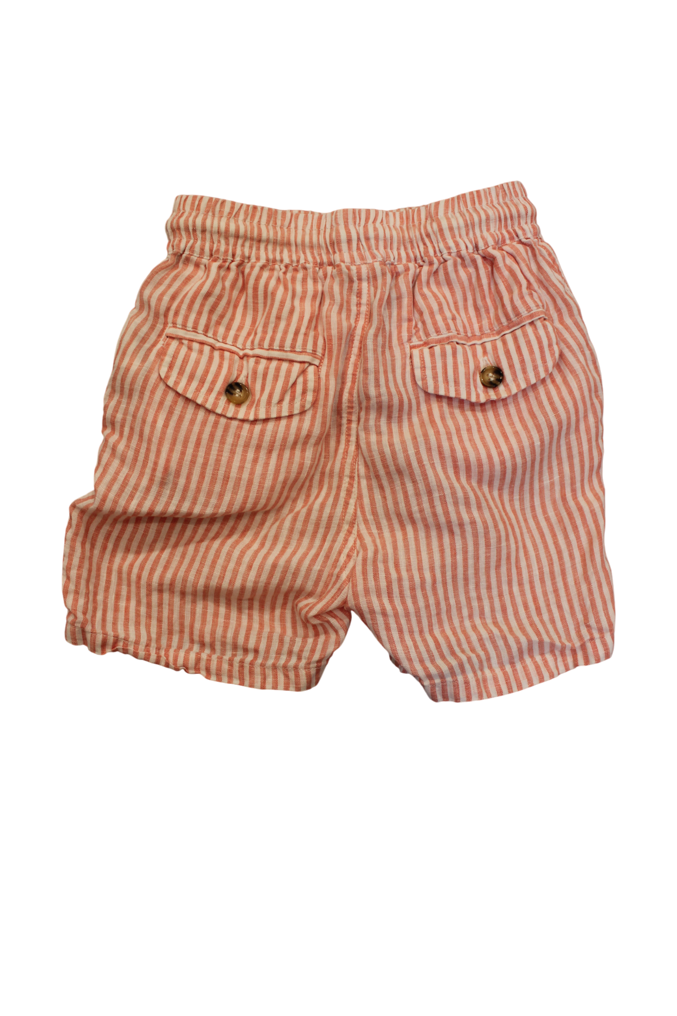 Adorable red and white striped linen shorts perfect for warm weather adventures! These lightweight shorts feature a classic nautical-inspired stripe pattern that's both timeless and fun. Crafted from breathable linen, they're ideal for keeping kids cool and comfortable during summer play. The relaxed fit allows plenty of room for movement, whether your little one is at the beach, park, or running around town. Easy to care for and effortlessly stylish, these shorts are a wardrobe essential that pairs beautifully with simple tees or tank tops.