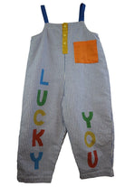 Adorable playsuit perfect for little adventurers! This charming piece features classic blue pinstripes paired with a cheeky 'lucky you' print that'll make everyone smile. Designed for comfort and play, it's ideal for everyday wear, special occasions, or just spreading good vibes. The relaxed fit gives kids room to move and explore while looking effortlessly cool. A fun wardrobe essential that captures that carefree childhood spirit! Great condition.