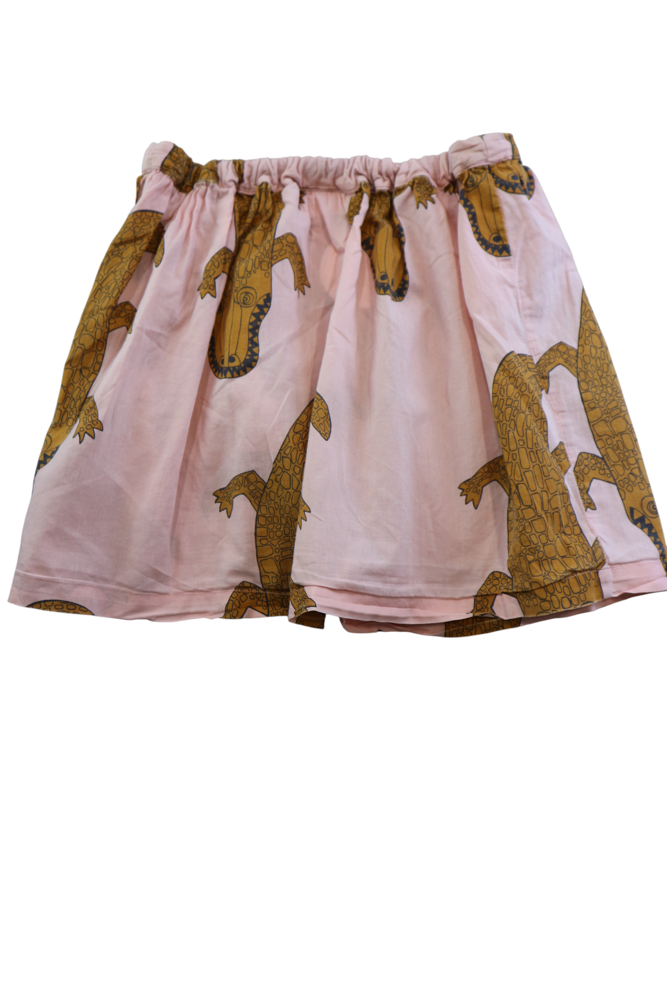 Mini Rodini skirt in pink with croc print, size 116/122 (5-7yrs). Adjustable waistband. Organic cotton.