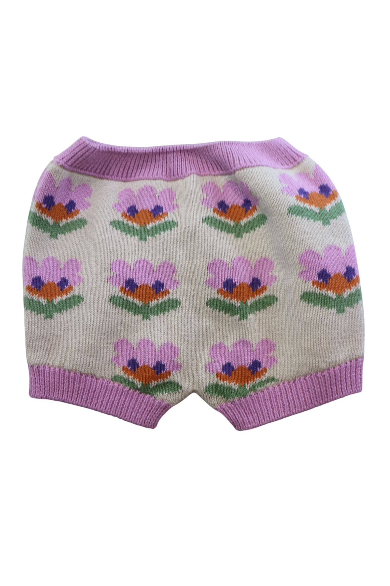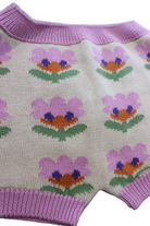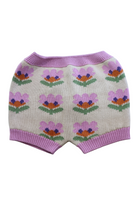 Oeuf knit bloomers in beige/purple with floral print, size 3-4yrs. 100% cotton.
