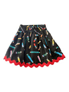 This iconic Stella McCartney Kids Skirt in size 6 features a playful pencil print with fun red trim. Made from soft, flowy 100% lyocell, it offers an elastic waistband and handy pockets for all-day comfort and style. Excellent condition.