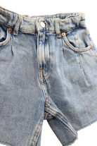 Zara high waist blue denim shorts with pleat, size 9. Adjustable waistband.