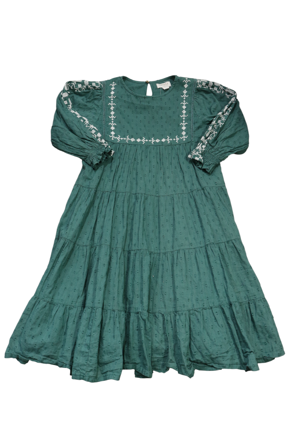 The Peggy Dress in size 6 presents a refined silhouette in a striking green hue. Designed for the discerning wearer, this piece seamlessly transitions from daytime elegance to evening sophistication.
