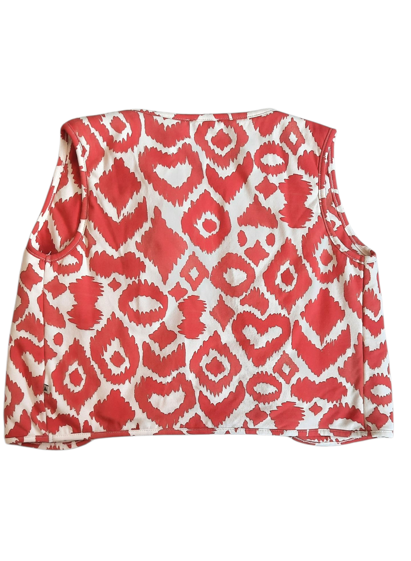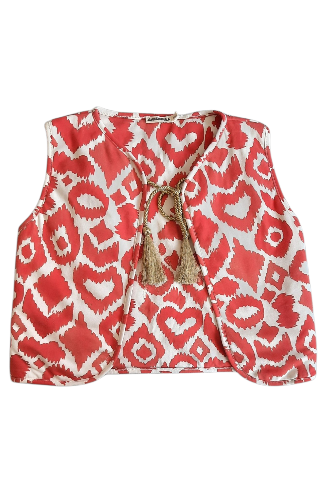 Crafted from soft, thick fabric, this vest offers gentle warmth and comfort. Its vibrant printed fabric adds a fun splash of color, while the shiny gold metallic rope ties bring a touch of playful sparkle—perfect for adventures both indoors and out!