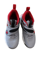 Shoot for style and comfort with these big kids’ basketball sneakers from Nike, sized US 4/EUR 36 (youth sizes). Featuring easy Velcro straps in a cool grey and red combo, they’re perfect for fast-paced games and playful moves on and off the court. Very good condition.