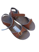 Kids' brown sandals with buckles and adjustable straps. Leather upper, very good preloved condition. Size US 1/EUR 32.