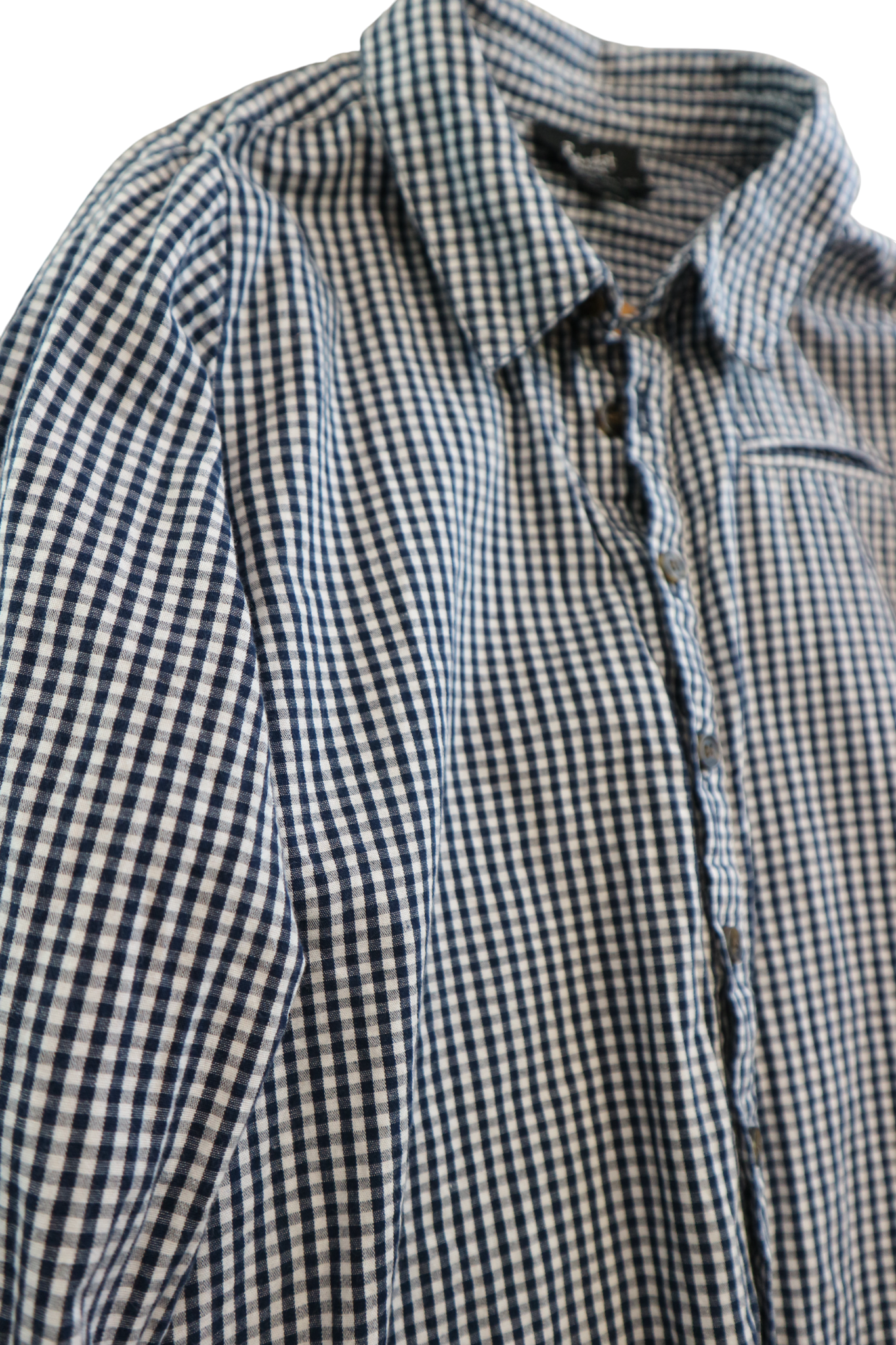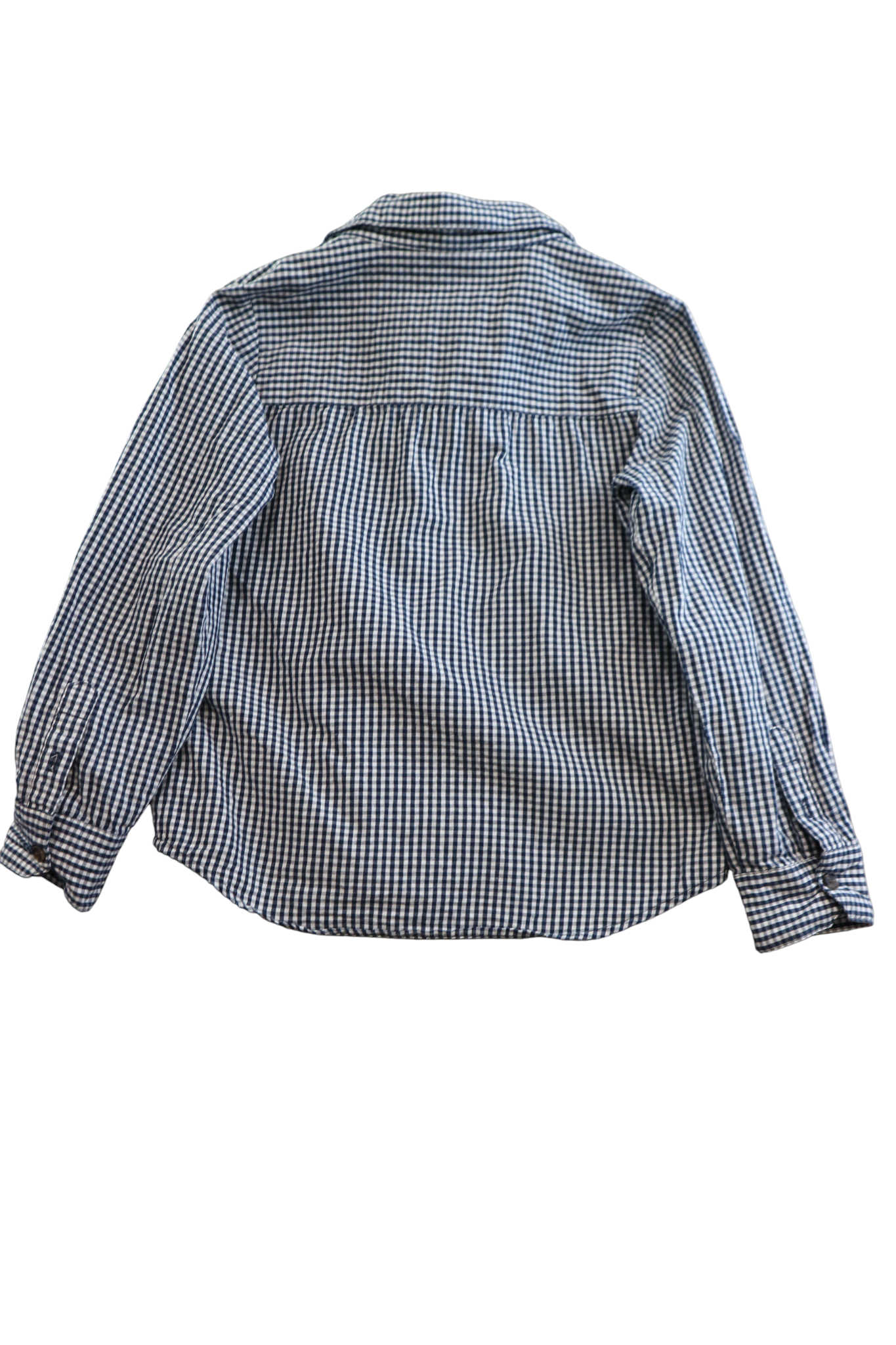Bardot Junior button front shirt in navy check, size 7. Cotton.