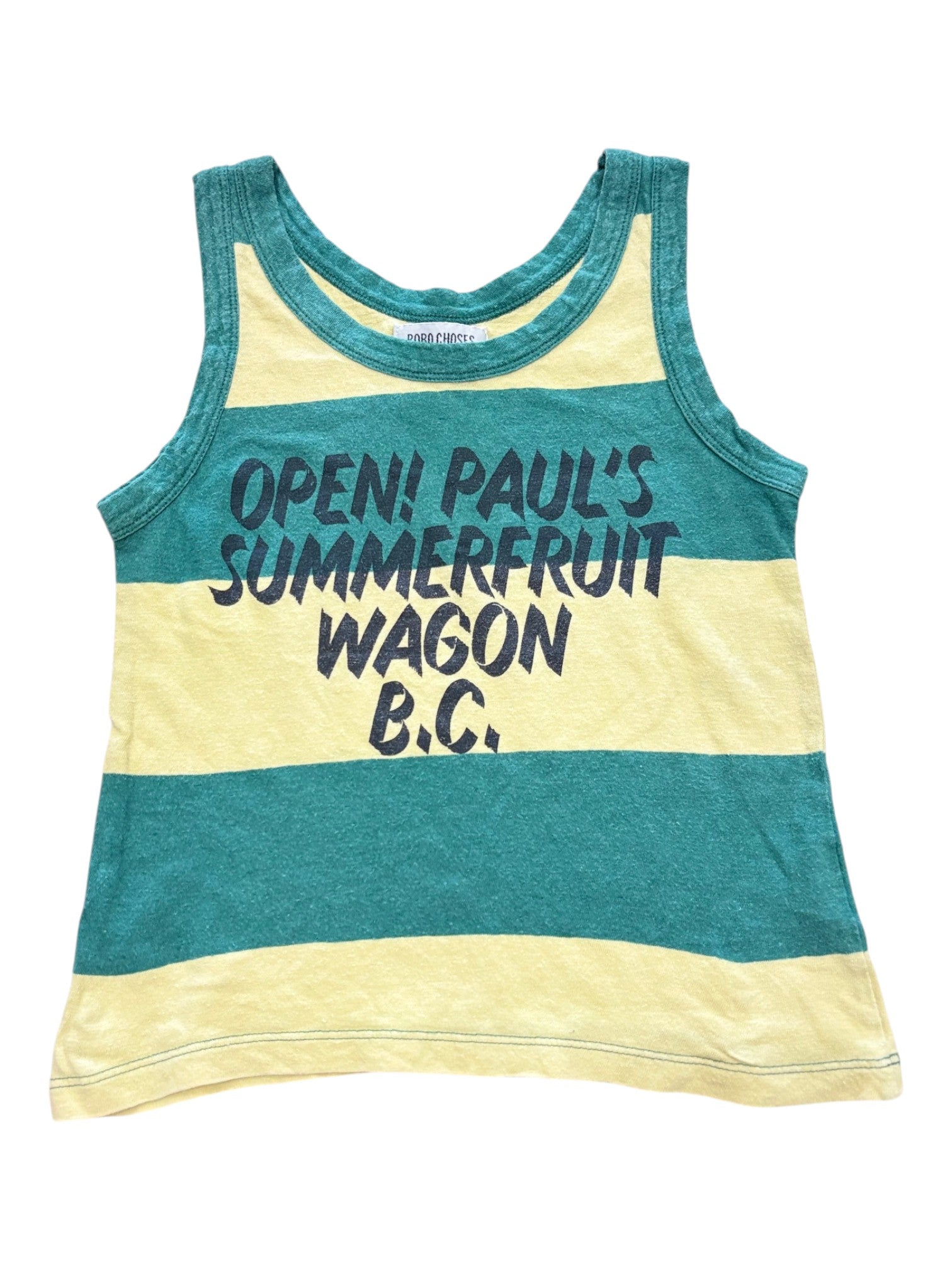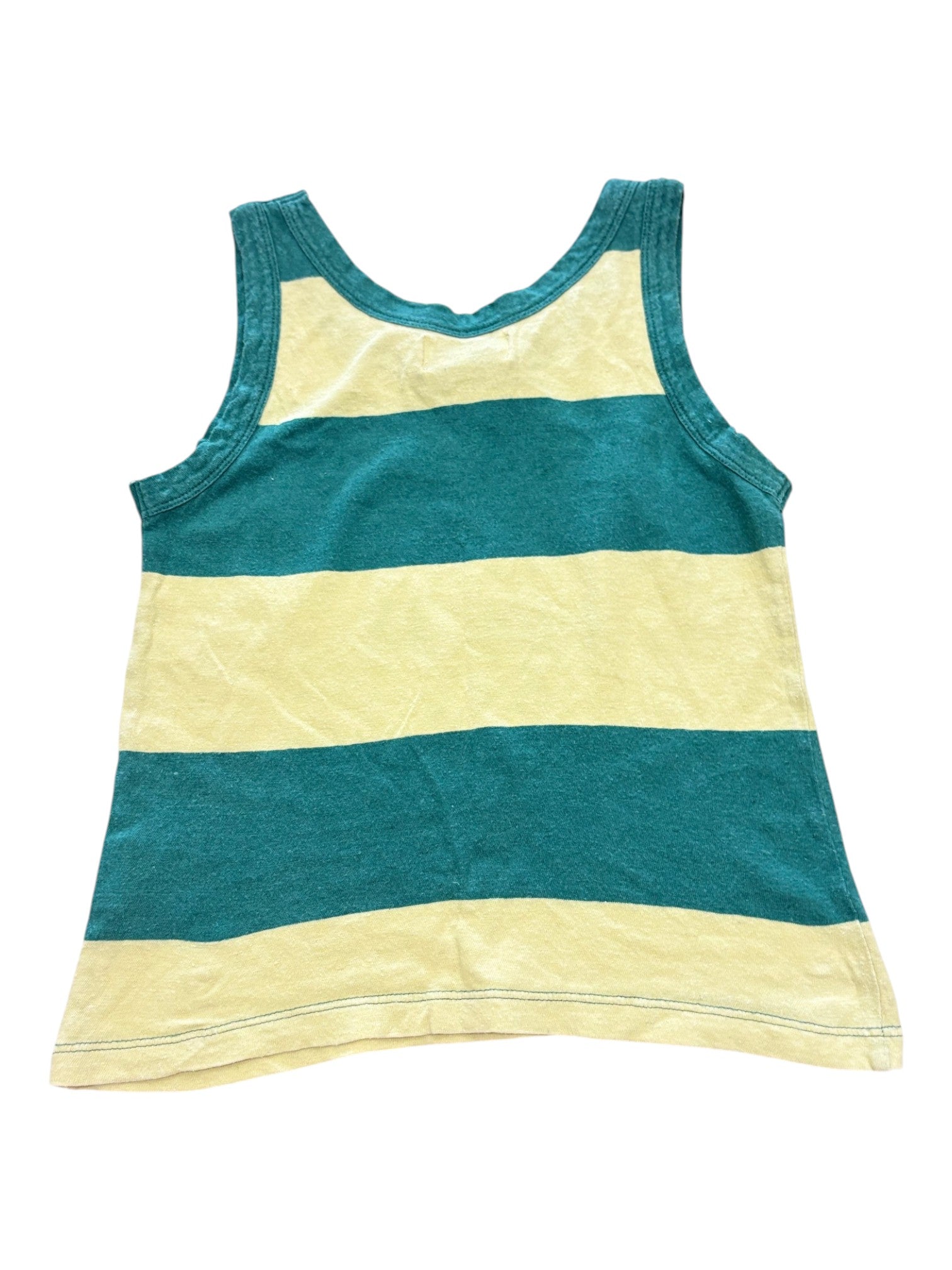 Vibrant Bobo Choses green and yellow striped tank in a lightweight cotton and linen blend! Perfect for warm weather, it's breathable and easy to layer.