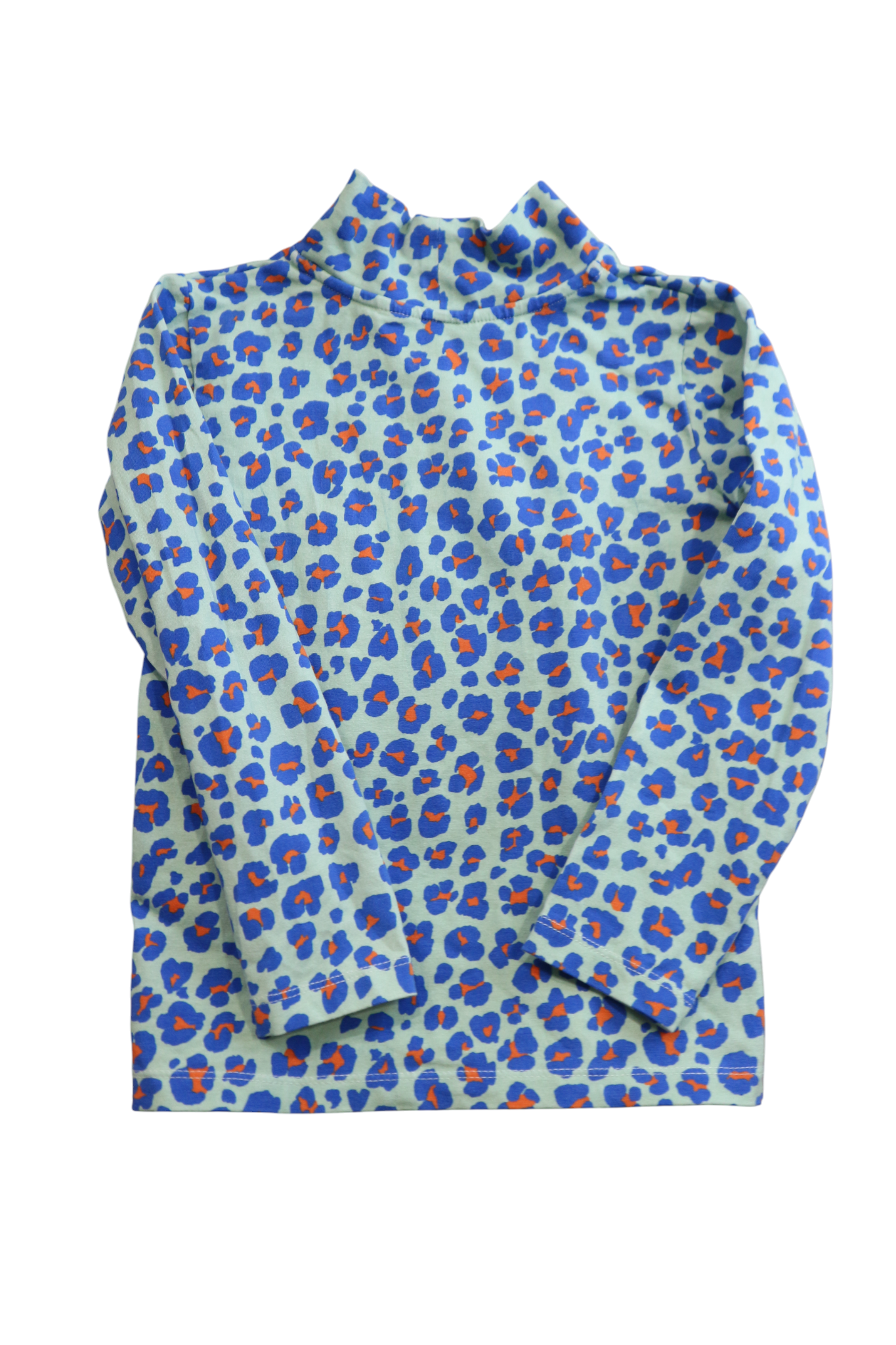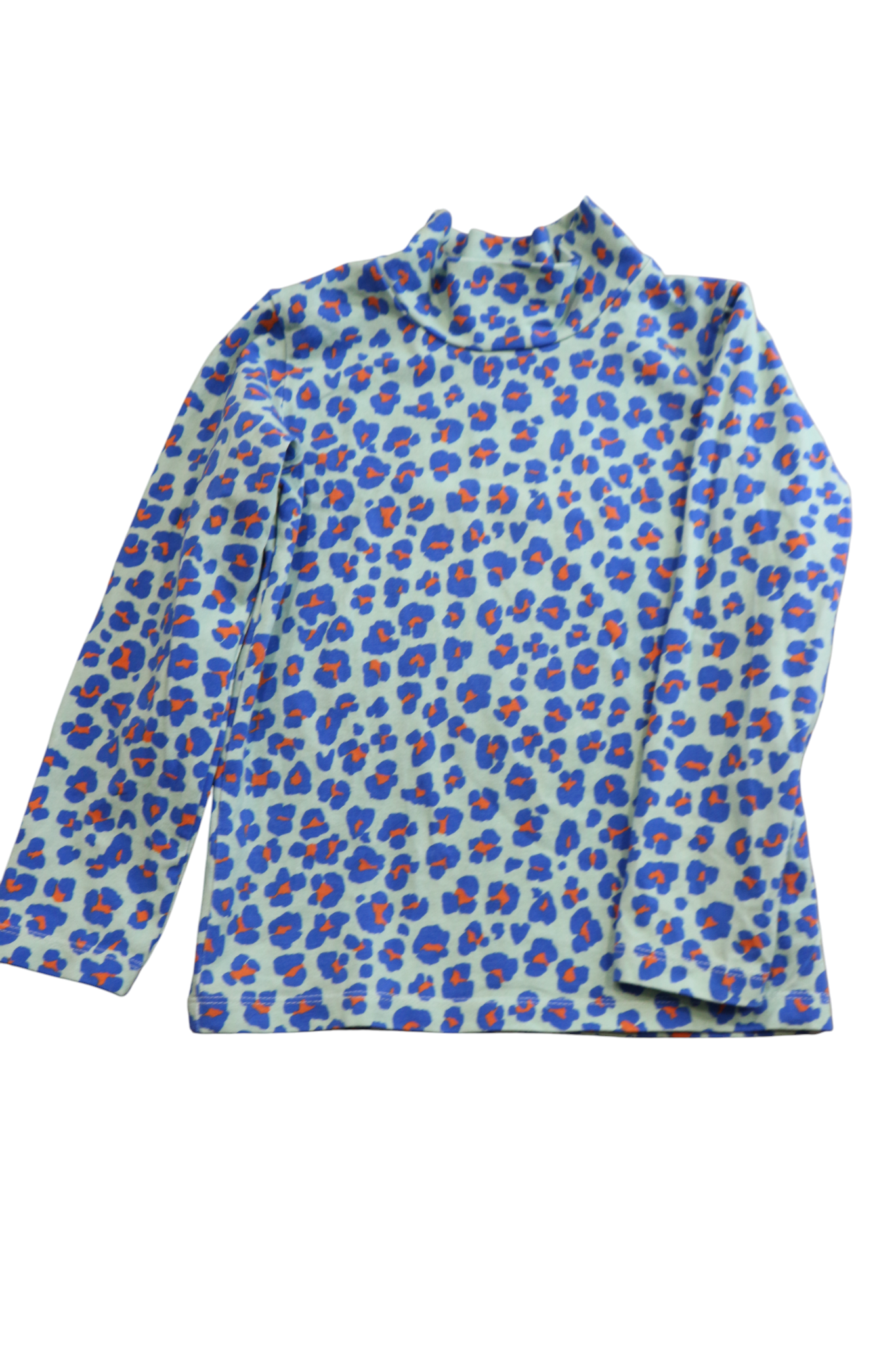 Gorman Playground mock neck long-sleeved top in green with print, size 4-5yrs. Organic cotton/elastane.