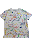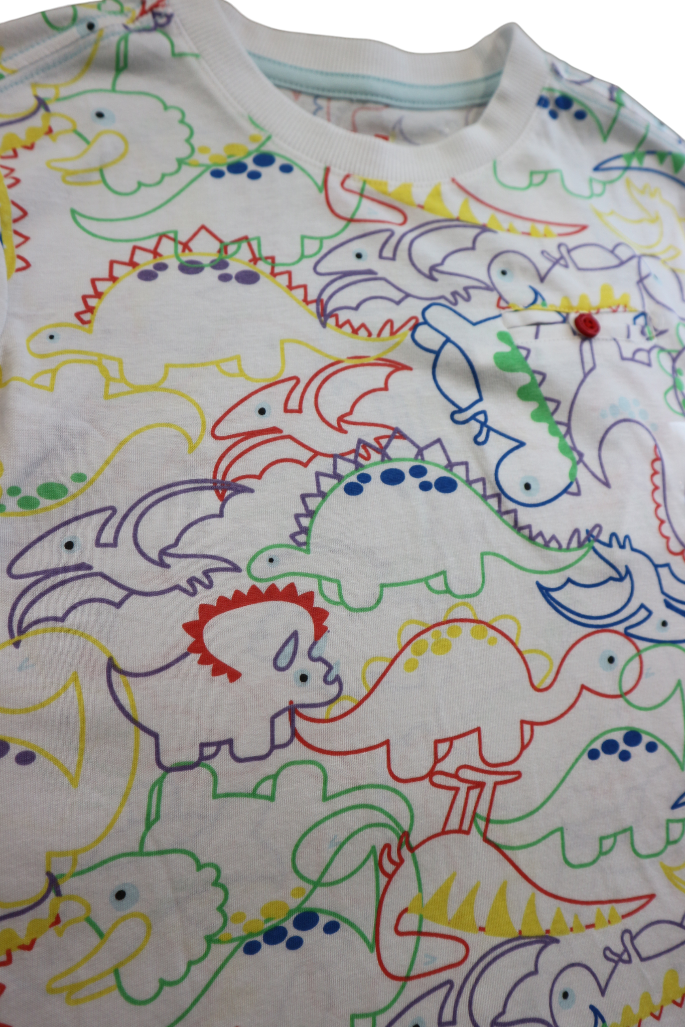 Milkshake t-shirt in white with dinosaur print and chest pocket, size 5. 100% cotton.